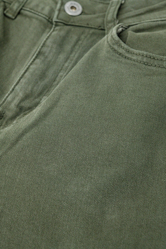Pantalón verde militar de pierna ancha con estampado de leopardo en el bajo