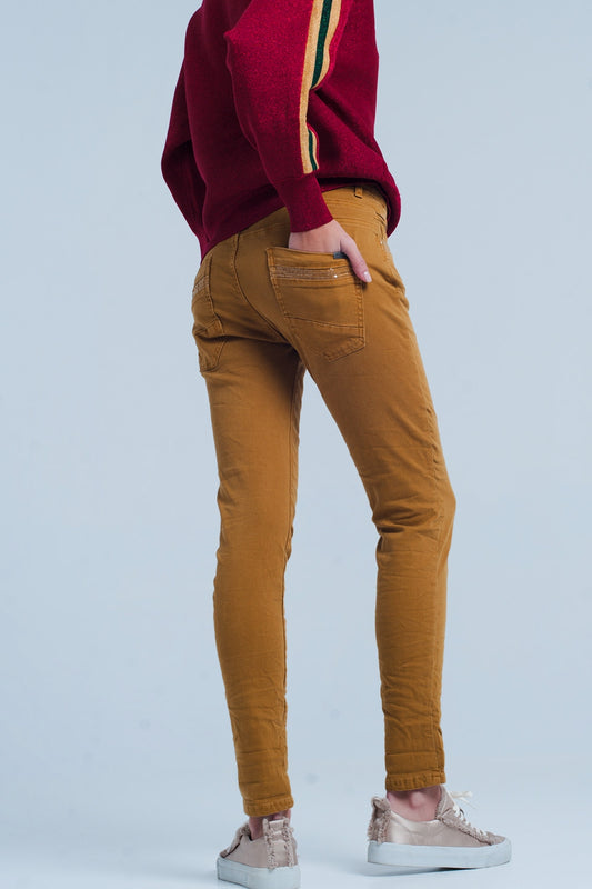 Pantalon vaquero ajustado con rasgaduras y linea de brillos
