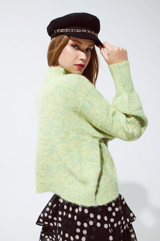 Suéter de punto grueso gris oscuro con mangas abullonadas