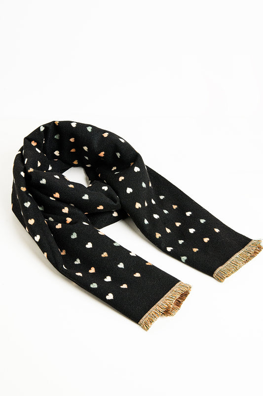 Bufanda negra de punto suave con estampado de corazones