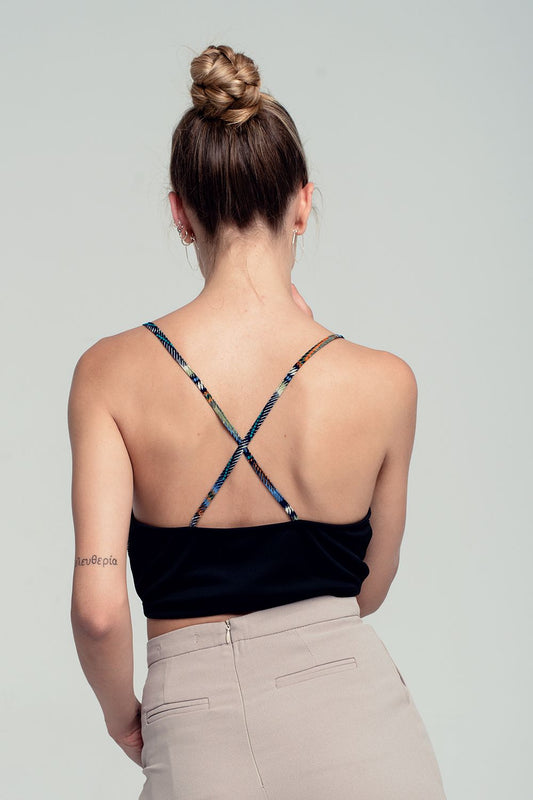Top sin mangas de canalé con detalle de cuentas en color blanco