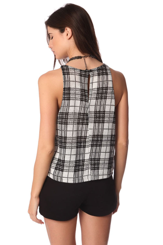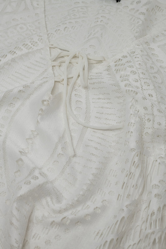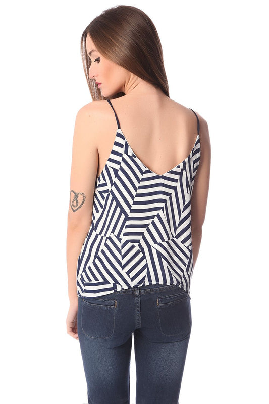 Top sin mangas con vuelo en color blanco y detalle de pompones en el bajo