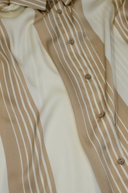 Blusa blanca oversize con rayas verticales en rosa y bolsillo en el pecho