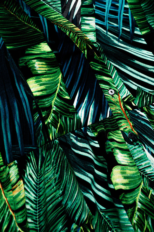 Vestido midi de manga corta y falda escalonada con estampado tropical