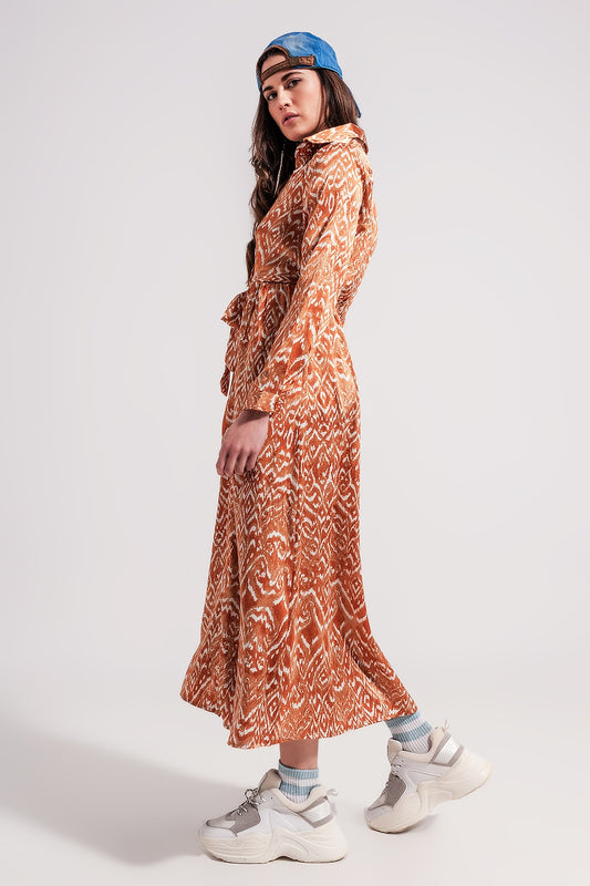 Vestido mini rojo con estampado lazada en la cintura y botones en la parte delantera
