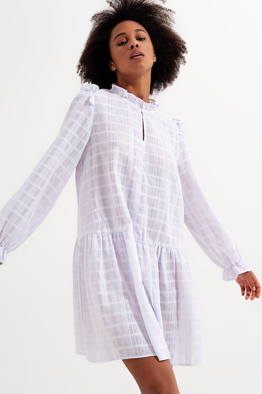 Mini vestido voluminoso con volantes en blanco