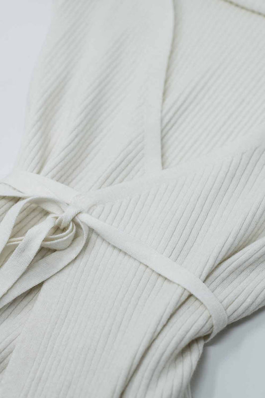 vestido de punto beige de manga larga y cuello alto