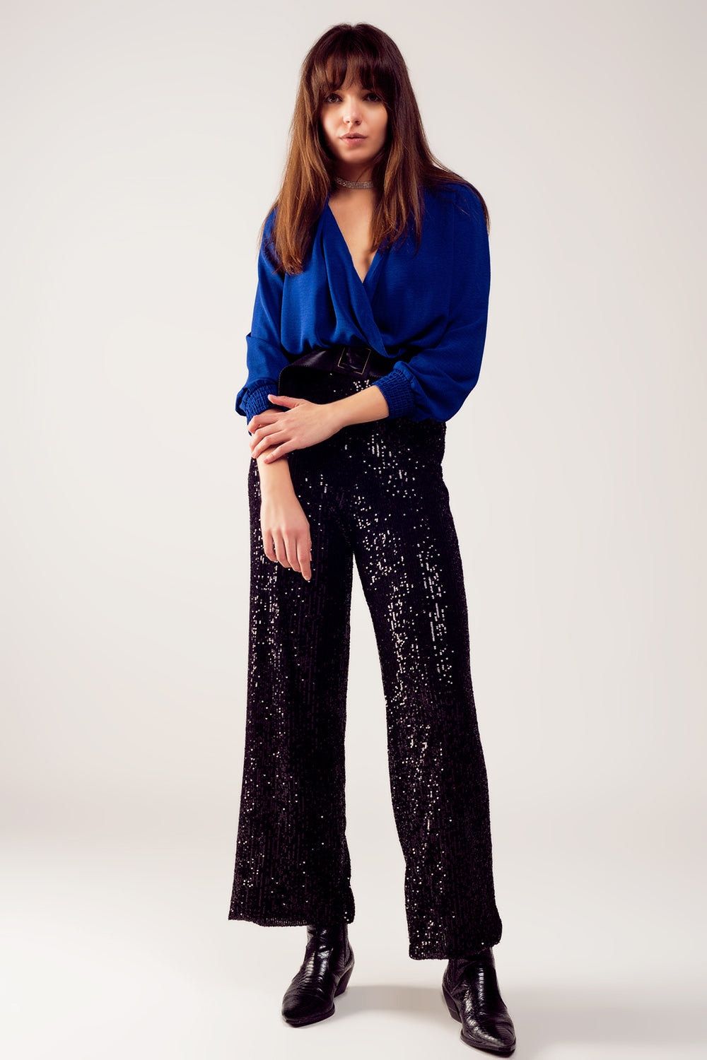 Subcategoria: Blusa. Cuello: Cuello en V. Manga: Manga Larga. Corte: Diseño cruzado. Estilo: Fiesta. Detalle: Parte delantera cruzada. Tejido: Satin / Raso. Borde : Puños fruncidos elásticos. runs true to size. S.