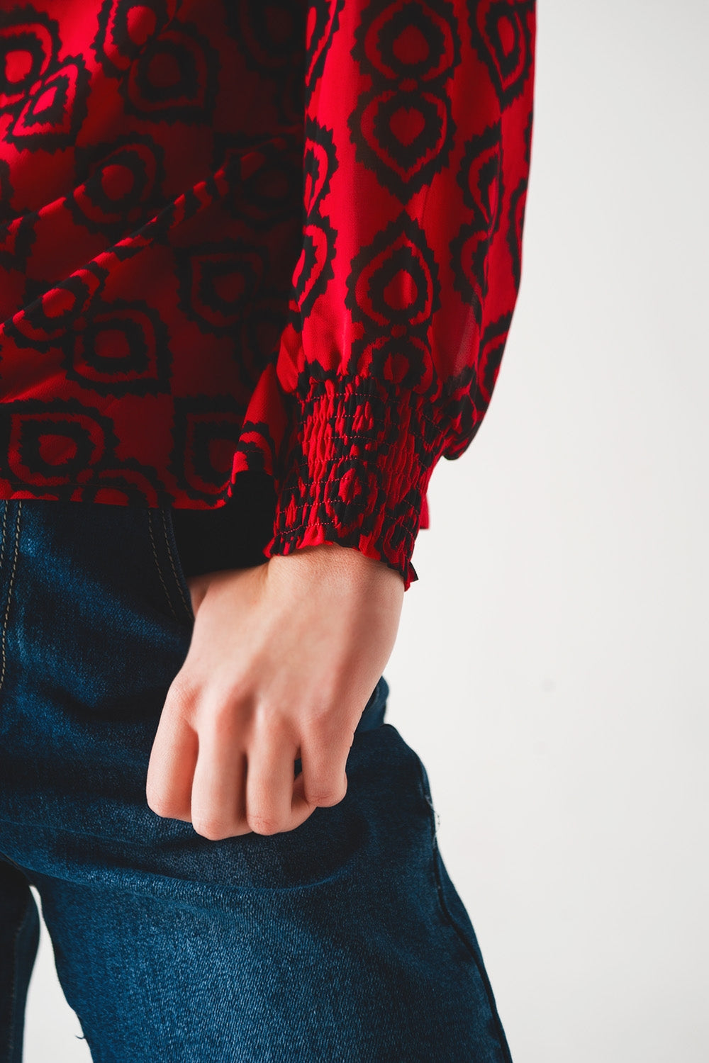 Subcategoria: Blusa. Cuello: Cuello desbocado. Manga: Manga Larga. Estampado: Estampado abstracto. Corte: Ajuste estándar. Estilo: Romántico. Tejido: Gasa. Borde : Puños fruncidos elásticos. runs true to size. S.