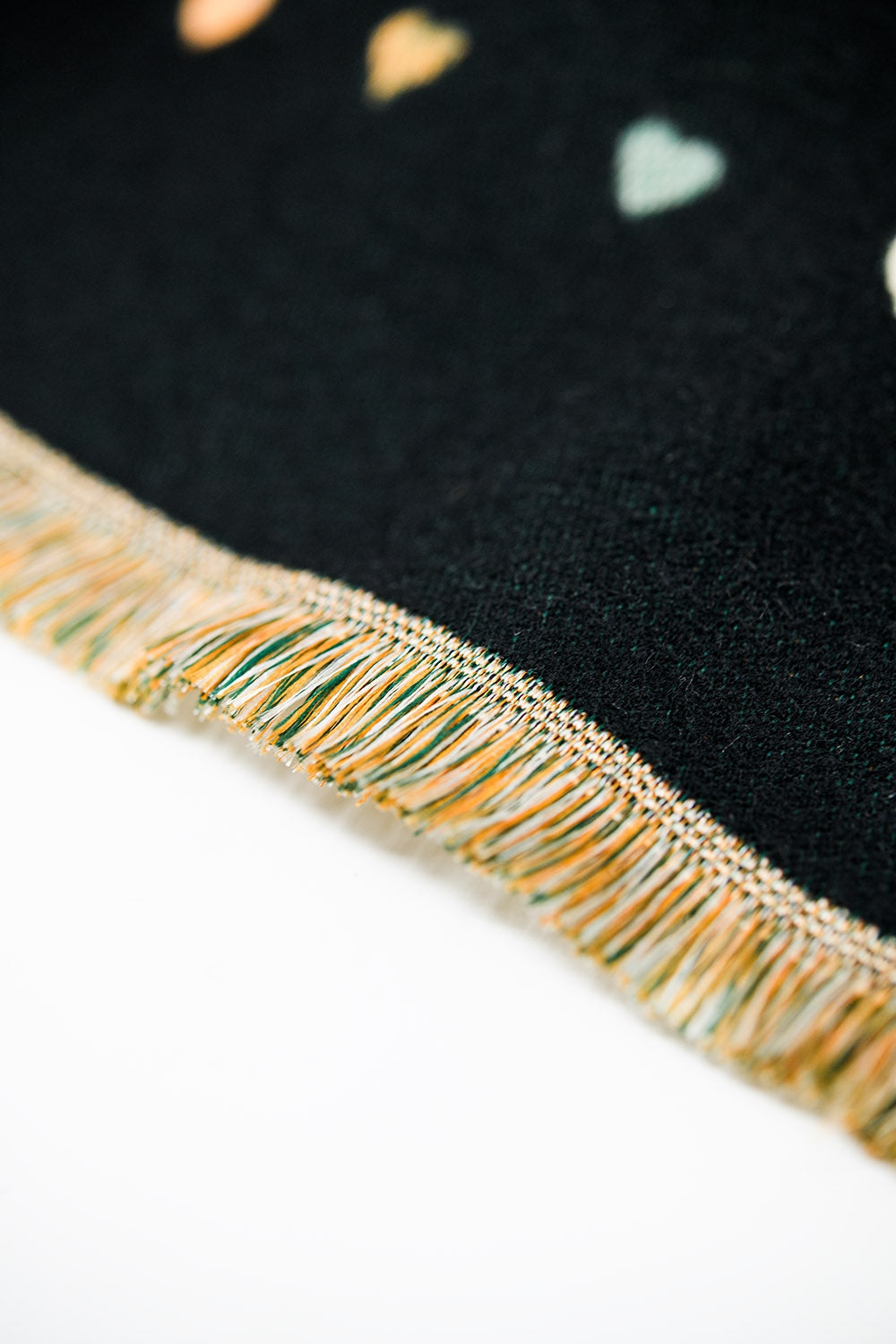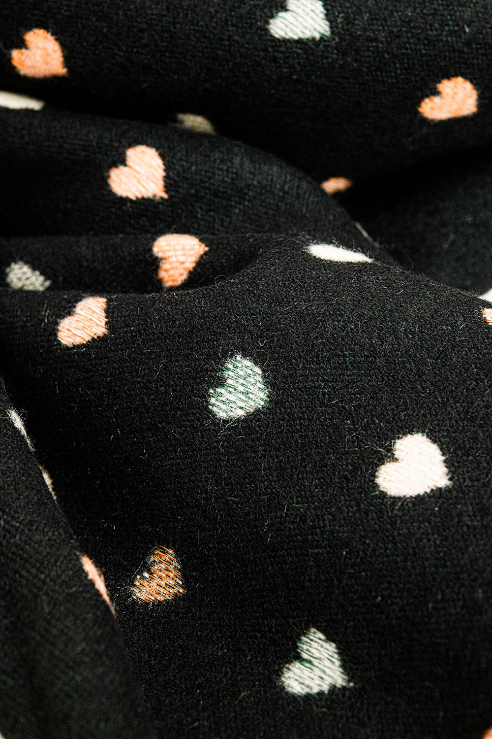 Bufanda negra de punto suave con estampado de corazones