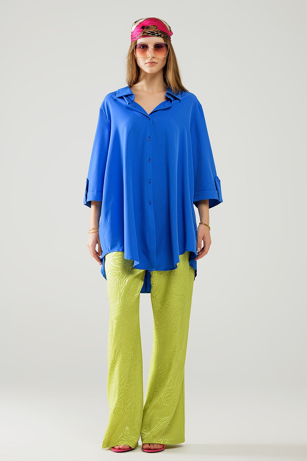 Camisa confeccionada en tejido muy suave y ligero en color azul eléctrico.