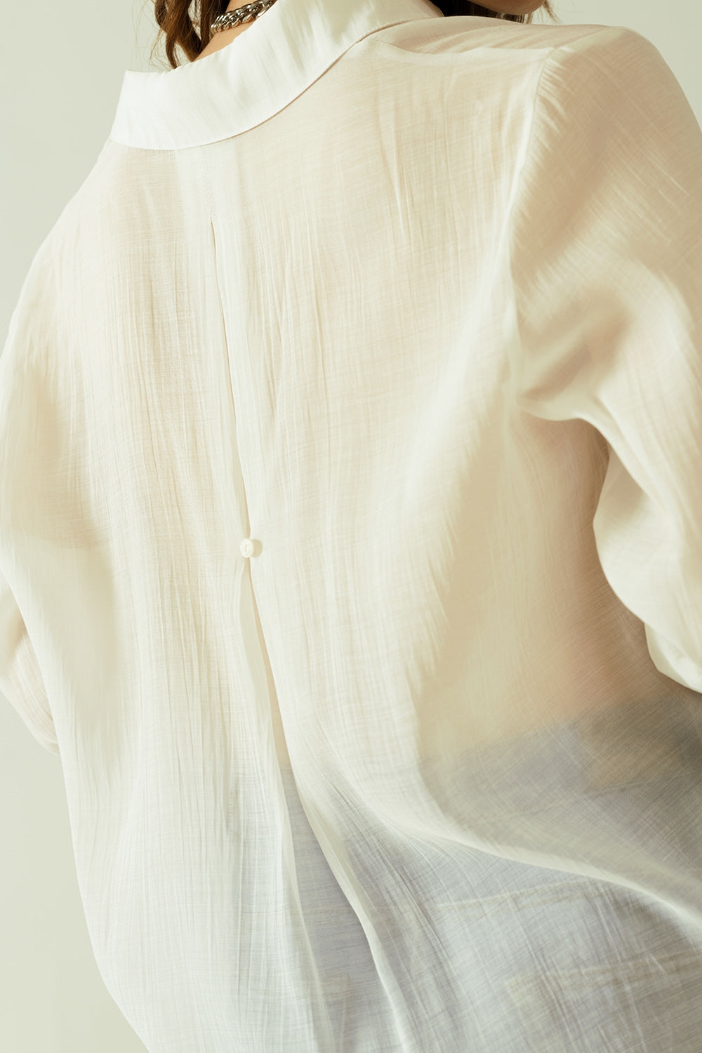 Camisa de tencel semitransparente con bolsillo en el pecho en color blanco