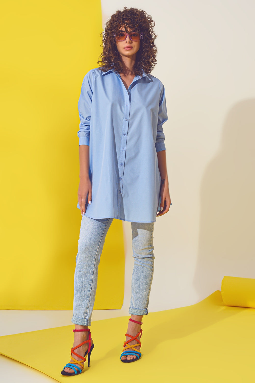 Largo: Largo . Subcategoria: Blusa. Cuello: Cuello italiano . Manga: Manga Larga. Corte: Corte extragrande. Estilo: Diario. Tejido: Popelina . Cierre: Tapeta de botones. runs big. S.