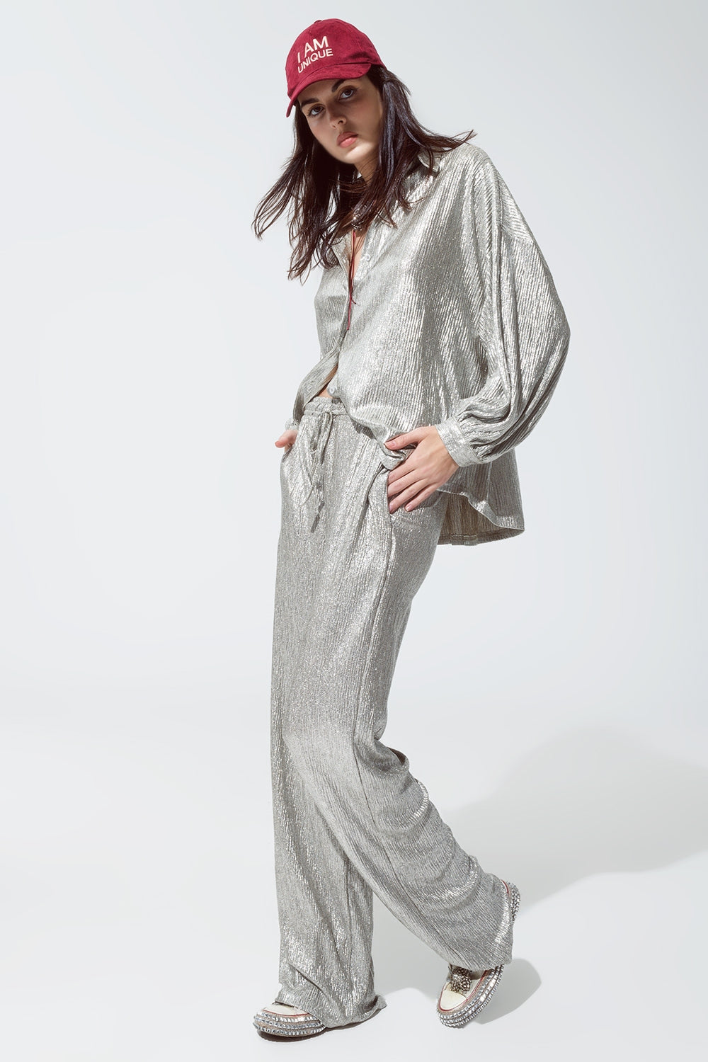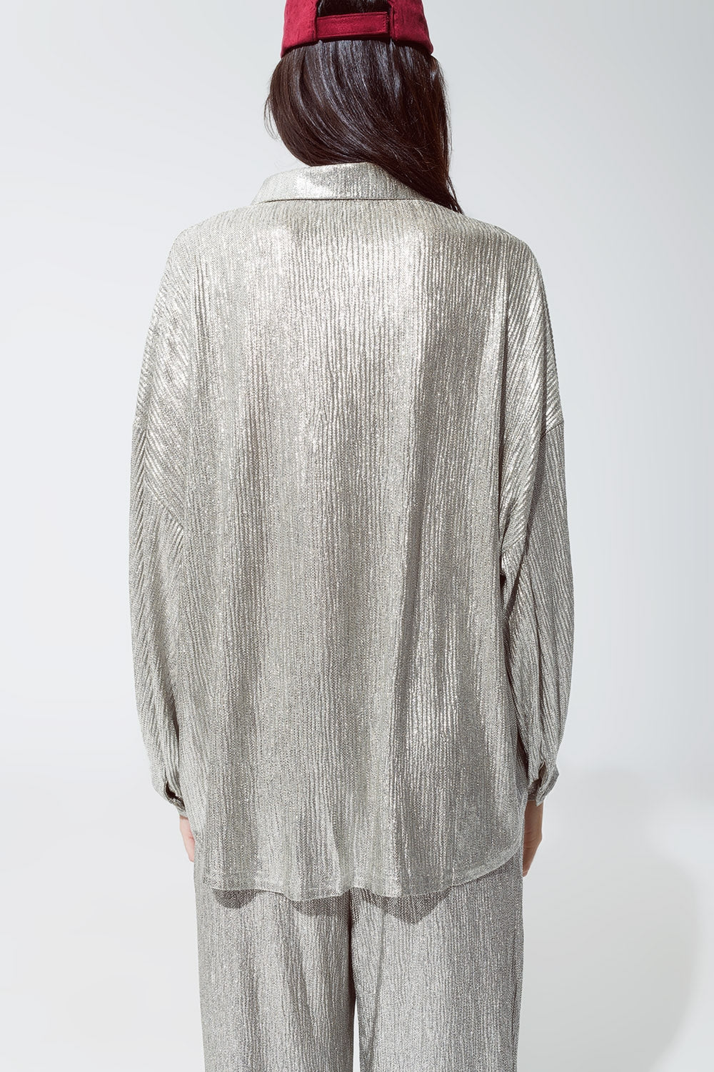 Subcategoria: Camisa. Cuello: Cuello estilo polo. Manga: Manga Larga. Corte: Diseño amplio. Estilo: Fiesta. Detalle: Acabado metálico. Tejido: Lúrex. runs true to size. S.