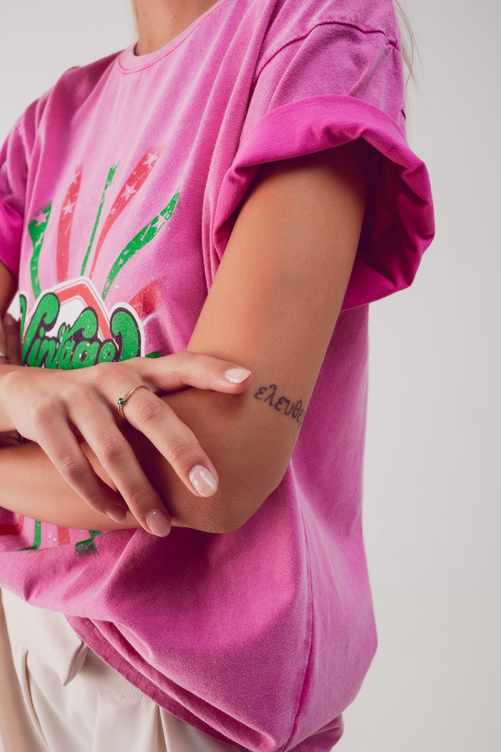 Camiseta casual con estampado gráfico de Vintage Queens en rosa