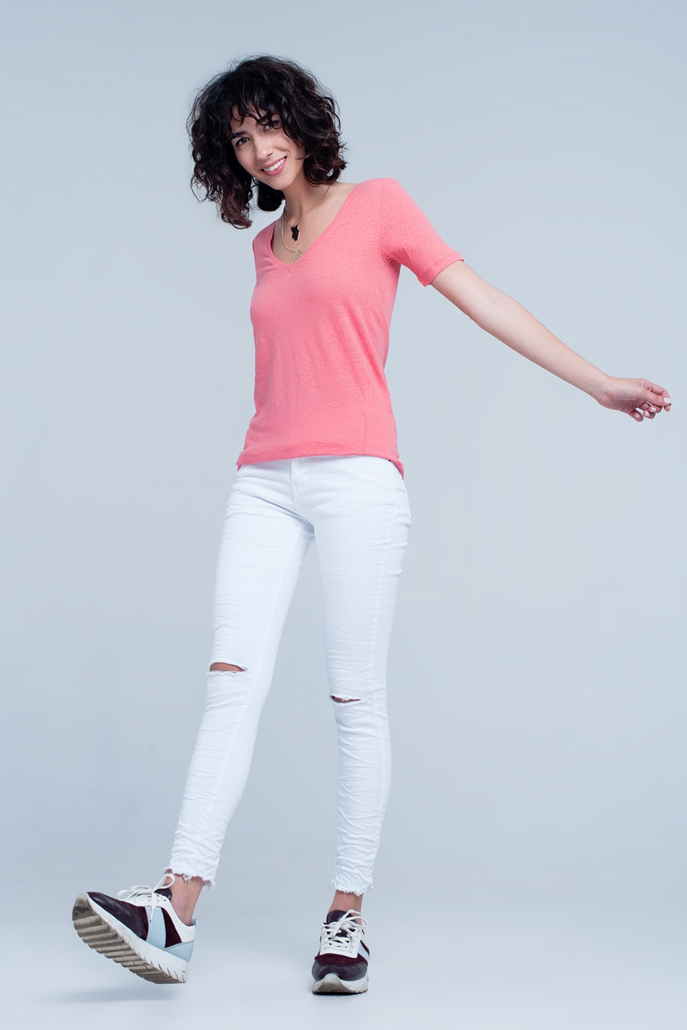 Subcategoria: Camiseta. Cuello: Cuello en V. Manga: Manga Corta. Estilo: Casual. runs true to size. S.
