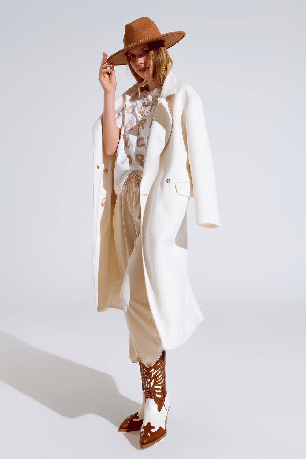 Camiseta crema con logotipos de nombres famosos en la parte delantera