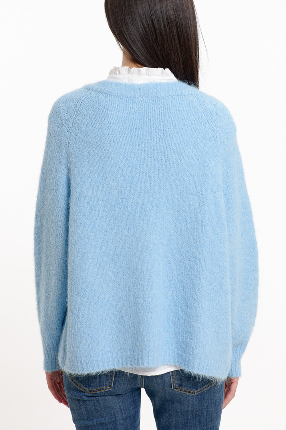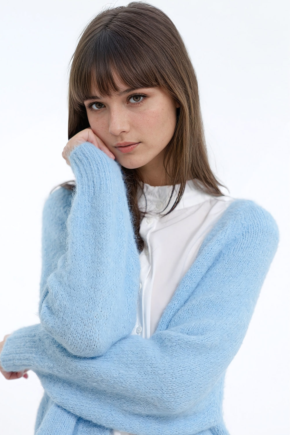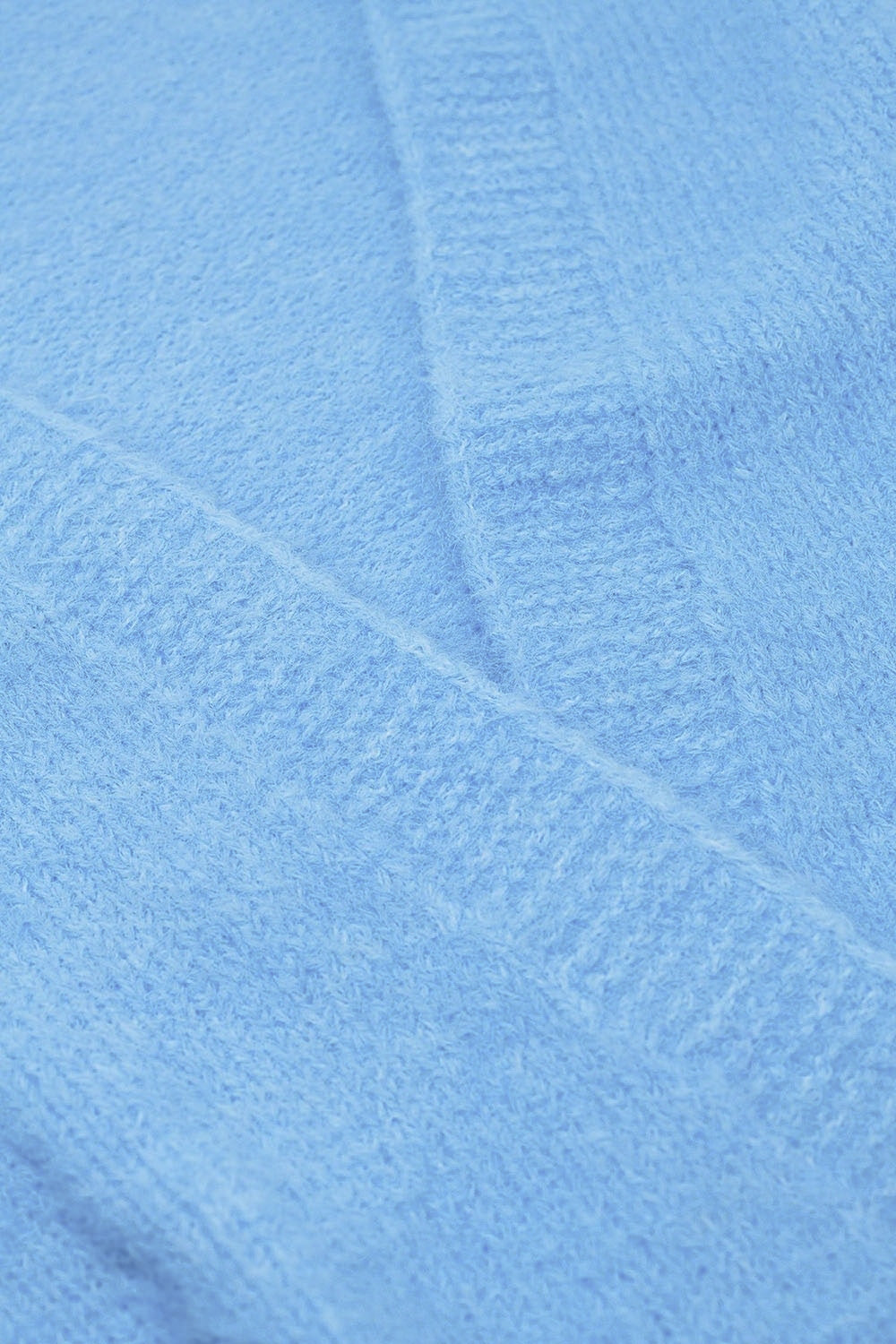 Cárdigan abierto de punto suave y esponjoso en azul bebé con canalé en los puños y las mangas
