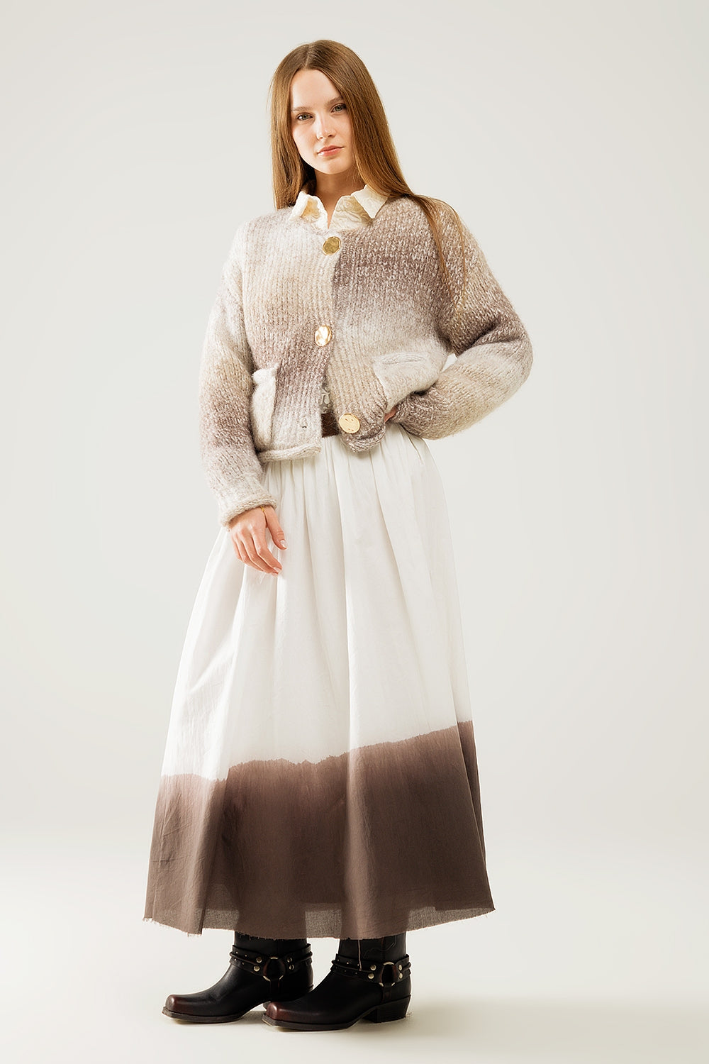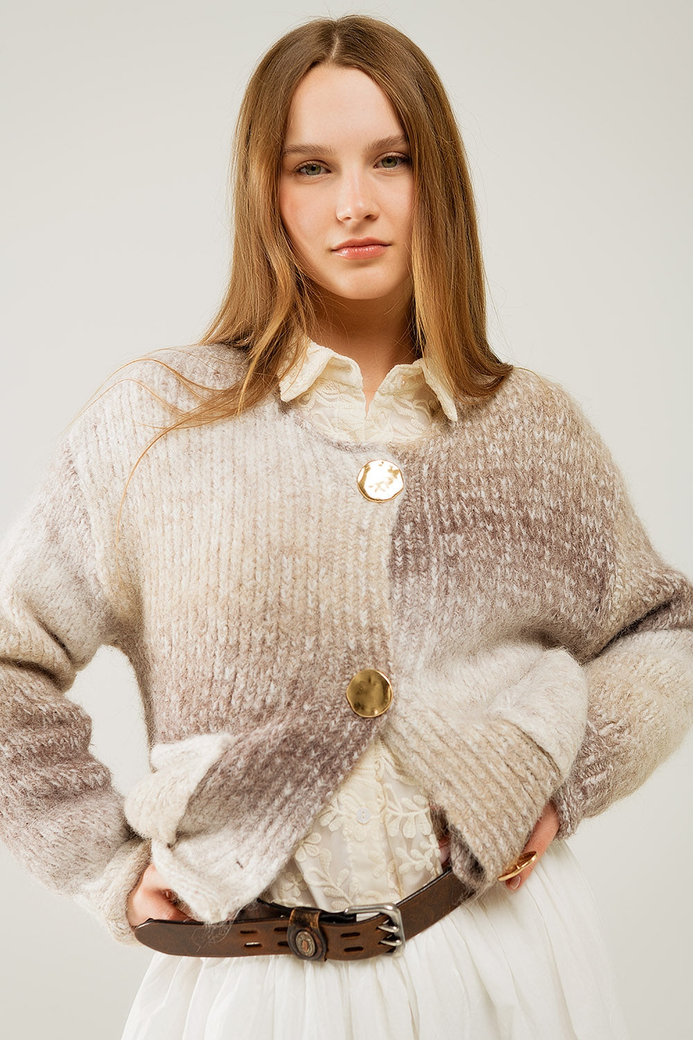 Cárdigan de punto por cable crema y marrón