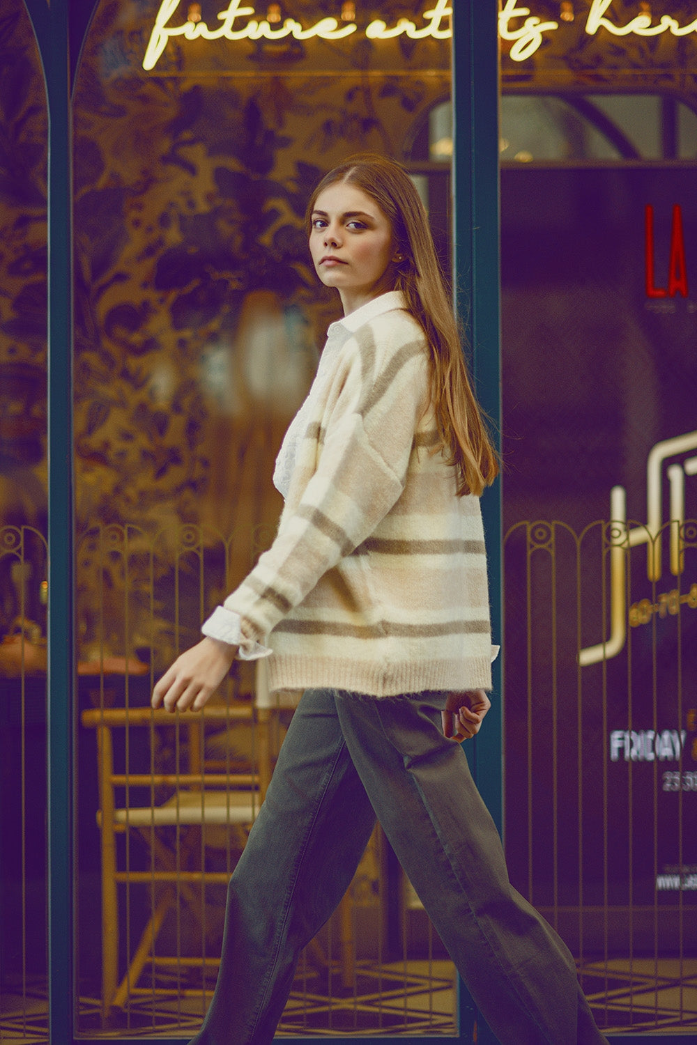 cárdigan de rayas beige