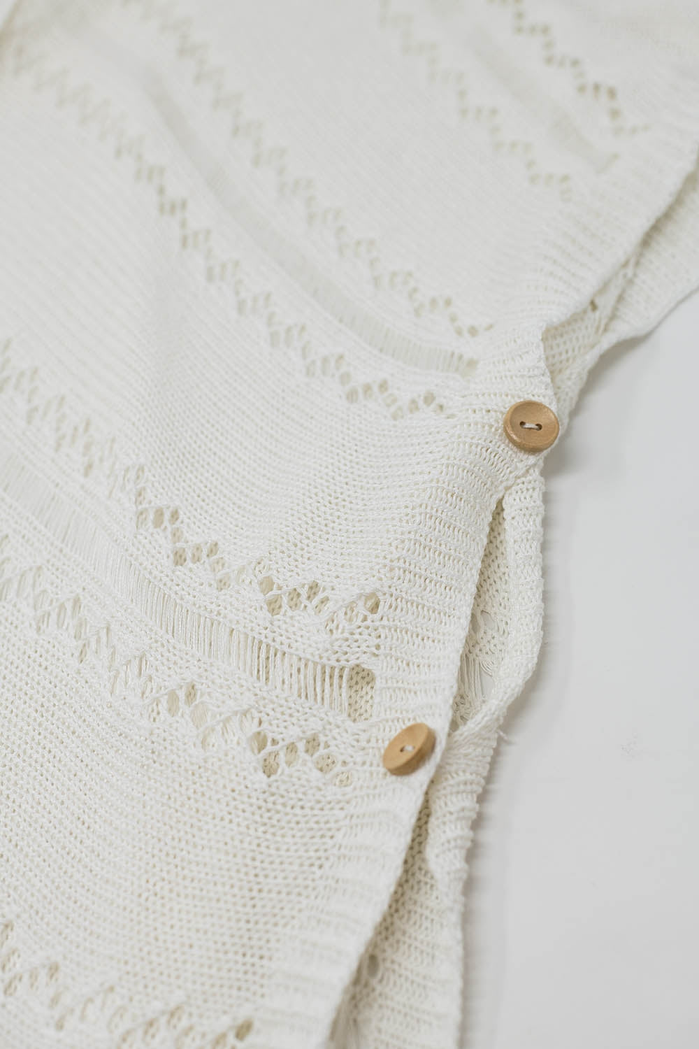 Largo: Largo maxi. Subcategoria: Cárdigan. Manga: Manga Corta. Corte: Ajuste estándar. Estilo: Estilo boho. Detalle: Borde con flecos. Tejido: Punto pointelle. U.