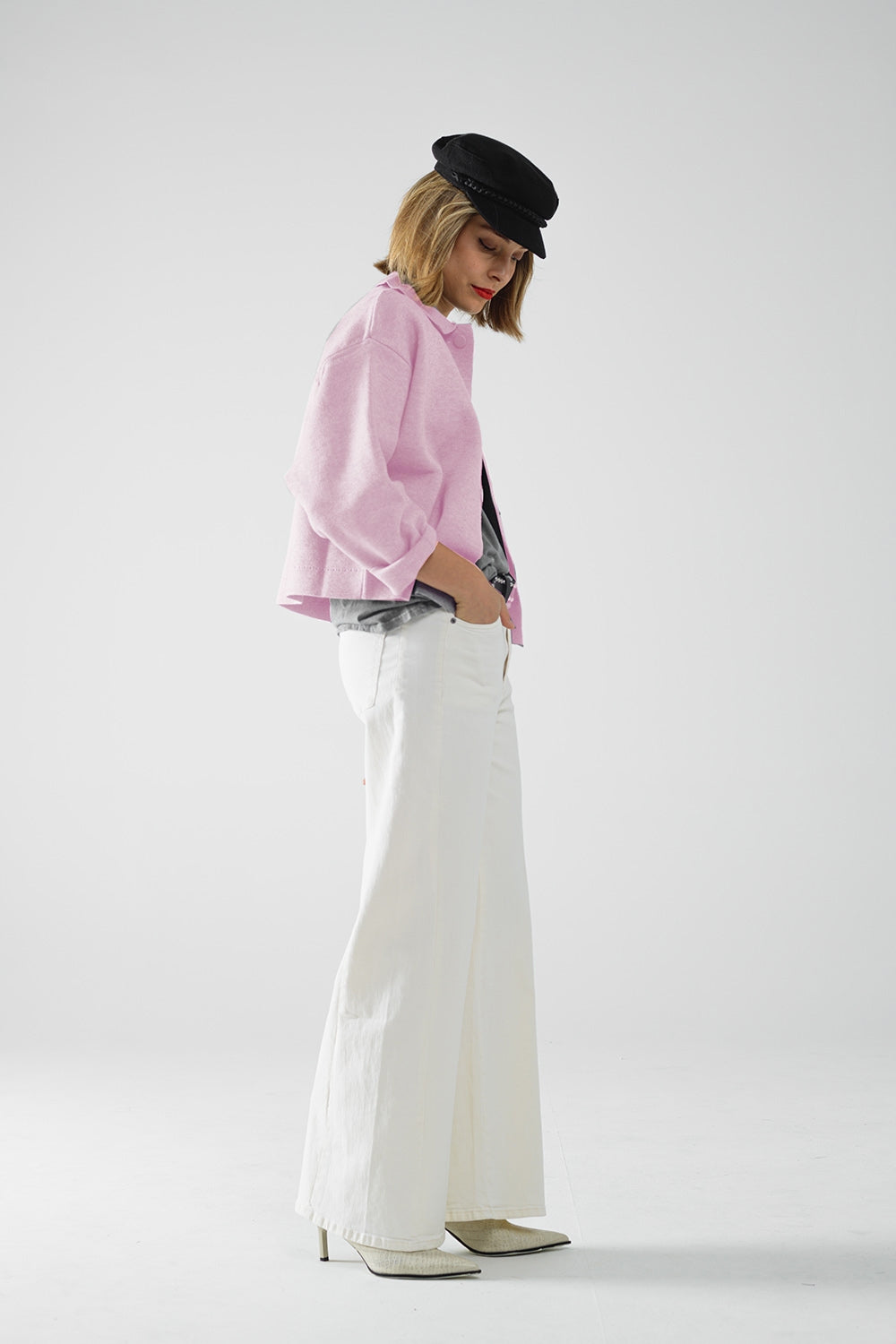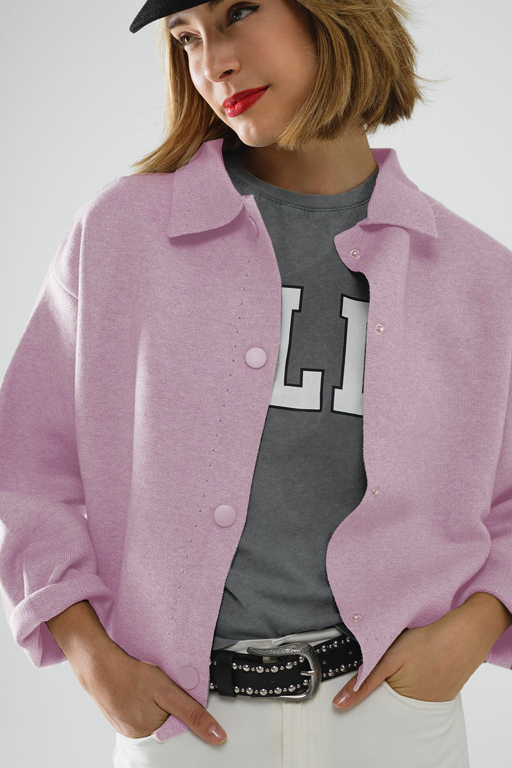 Cárdigan relajado de punto de alta calidad en rosa