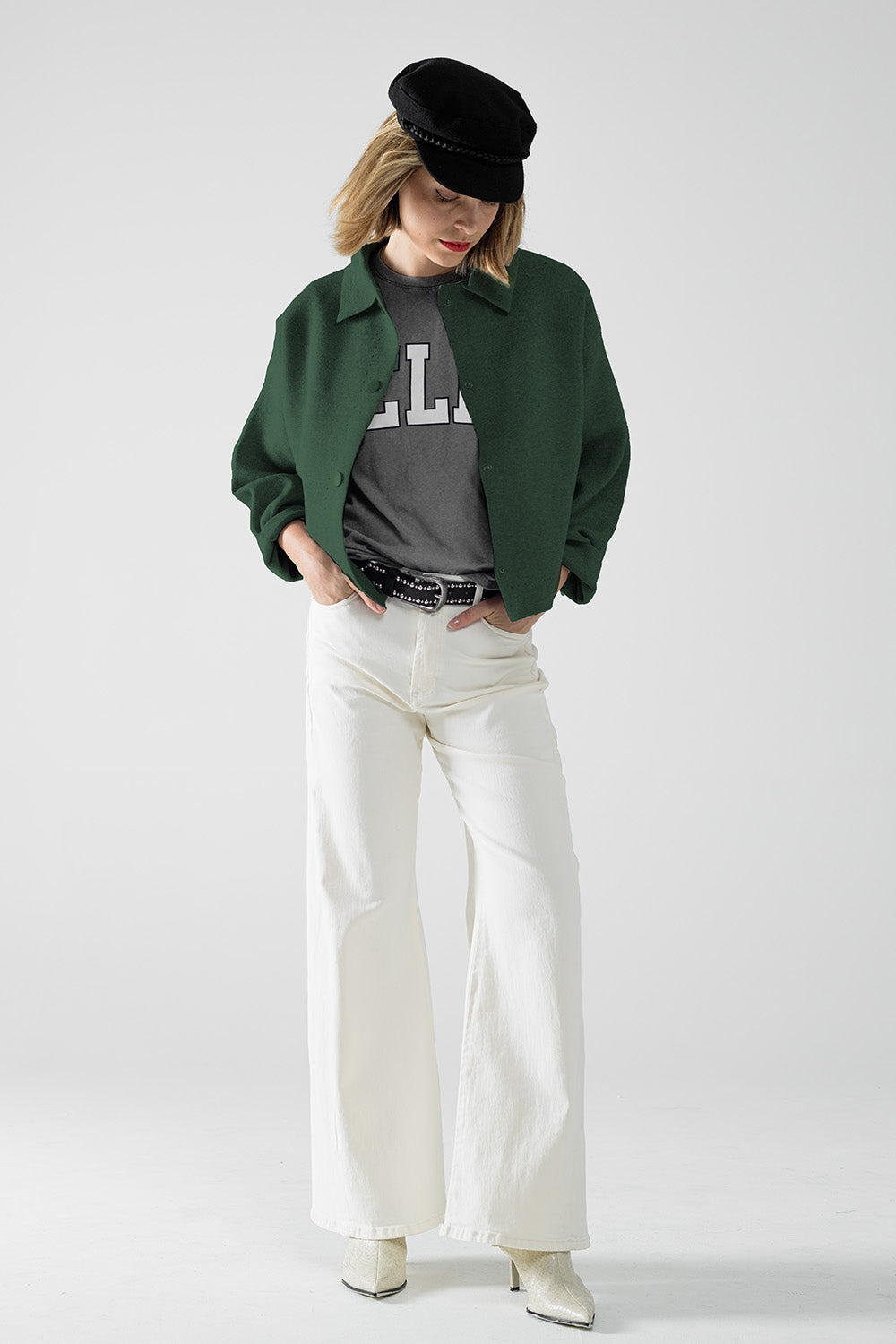 Cárdigan relajado de punto de alta calidad en verde esmeralda