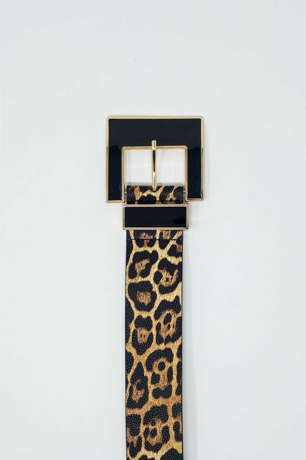 Cinturón ancho de leopardo con hebilla cuadrada negra