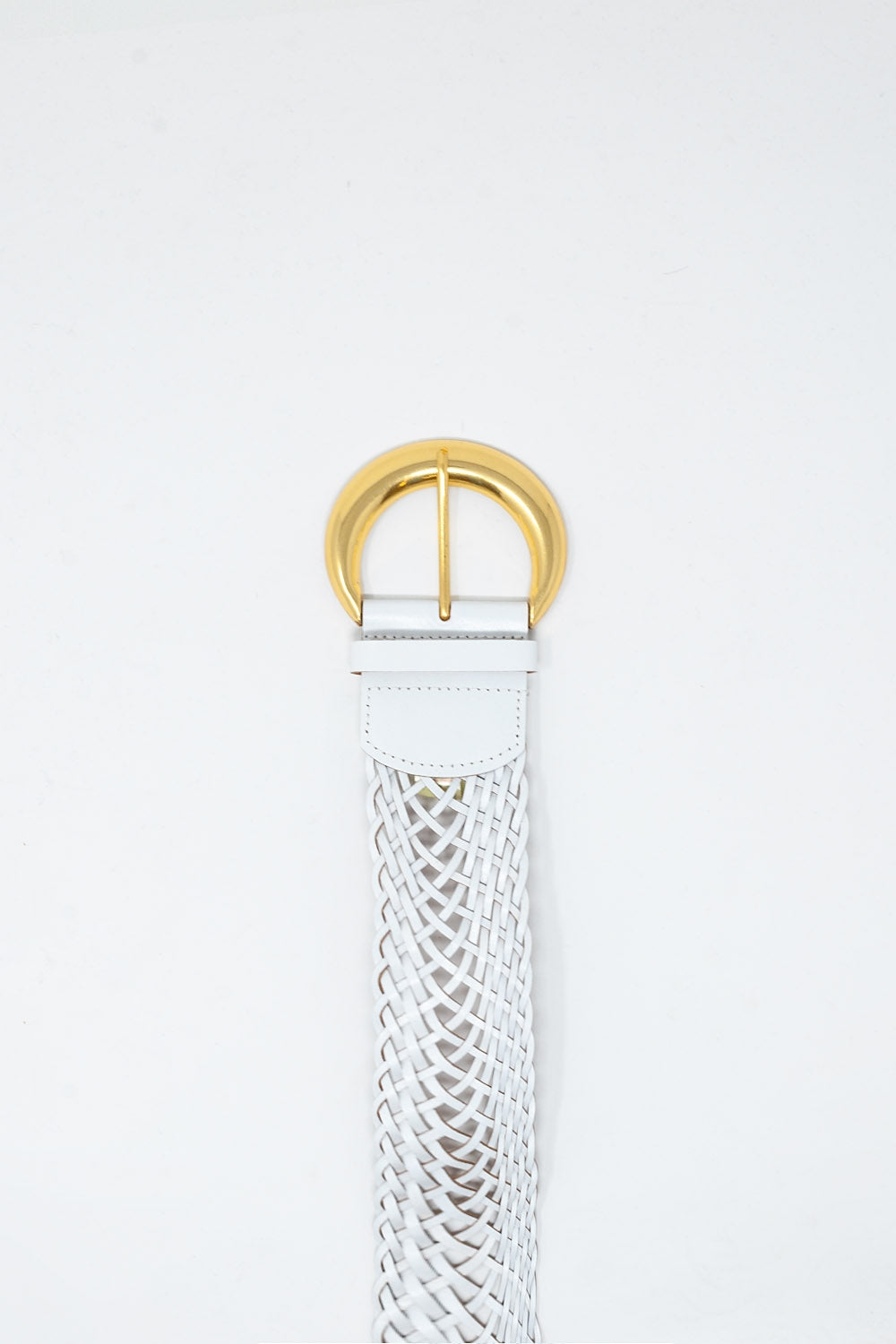 Cinturón Trenzado de Piel Sintética con Hebilla Dorada en Blanco