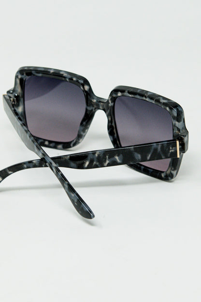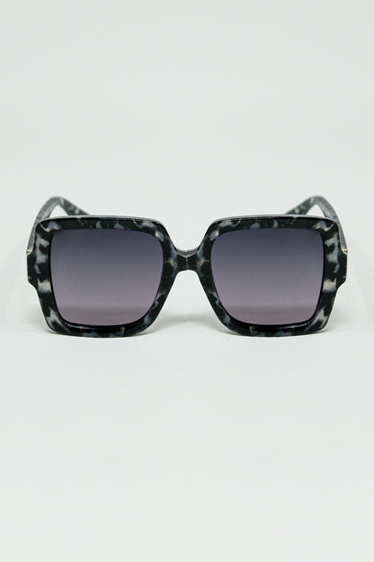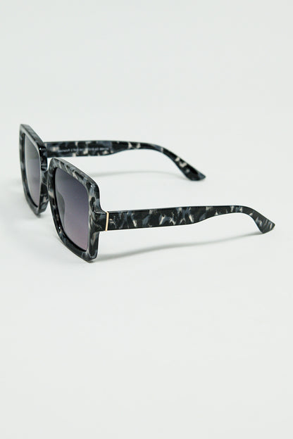 Gafas de sol cuadradas en blanco y negro con detalles de lunares grises