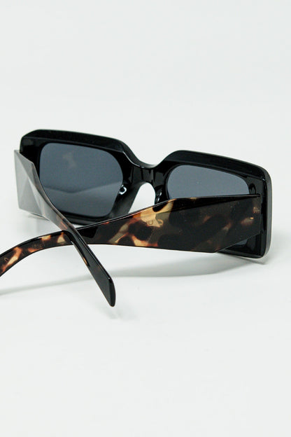 Gafas de sol cuadradas negras con estampado animal marrón en el lateral