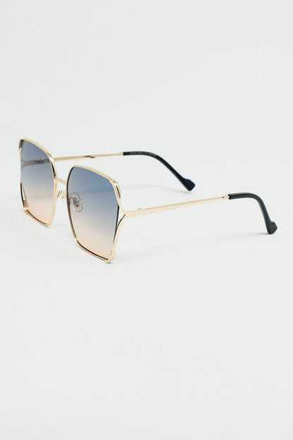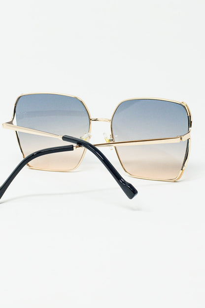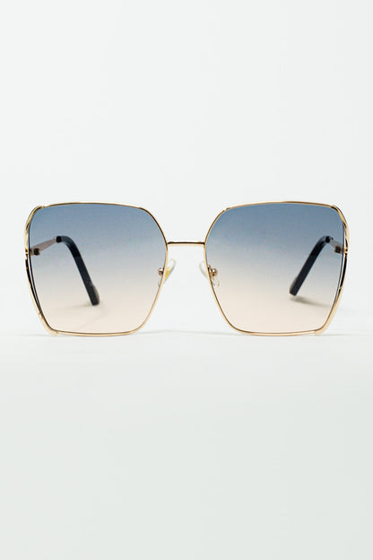 Gafas de sol cuadradas oversize de metal con lentes degradadas azules