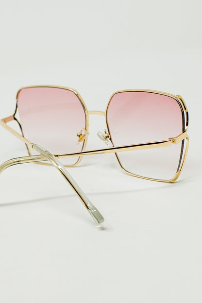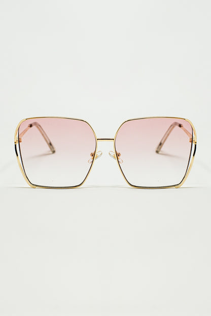 Gafas de sol cuadradas oversize de metal con lentes degradadas rosa claro