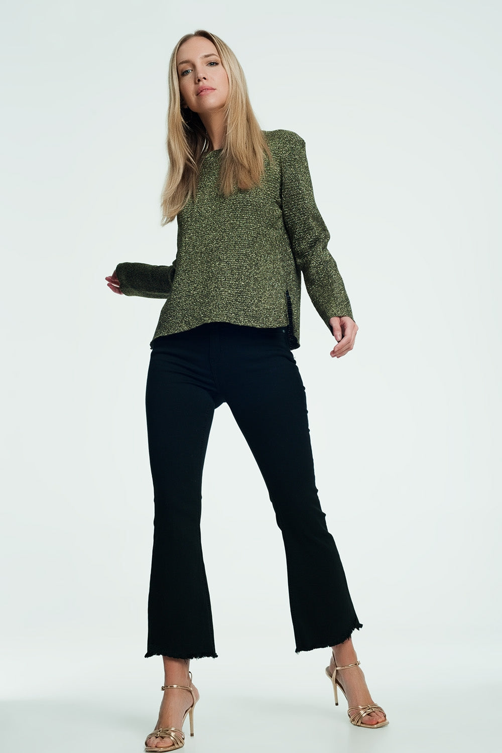 Bolsillos: Cinco bolsillos. Borde : Extremos deshilachados. Cierre: Cierre con cremallera. Corte: Corte acampanado. Detalle: Trabillas para el cinturón. Detalles del producto: Bolsillos funcionales. Estilo: Casual. Largo: Largo capri. Pierna: Acampanados. Subcategoria: Vaqueros. Tejido: Denim elástico. Tipo de vaquero: Diseño desgastado. runs true to size. S.