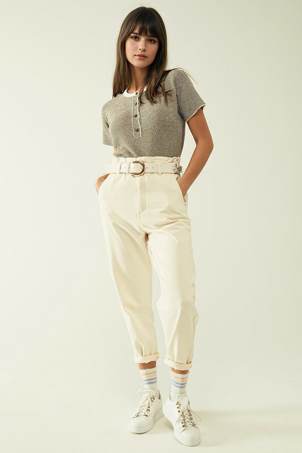 jersey con rayas caqui y cierre de botones dorados