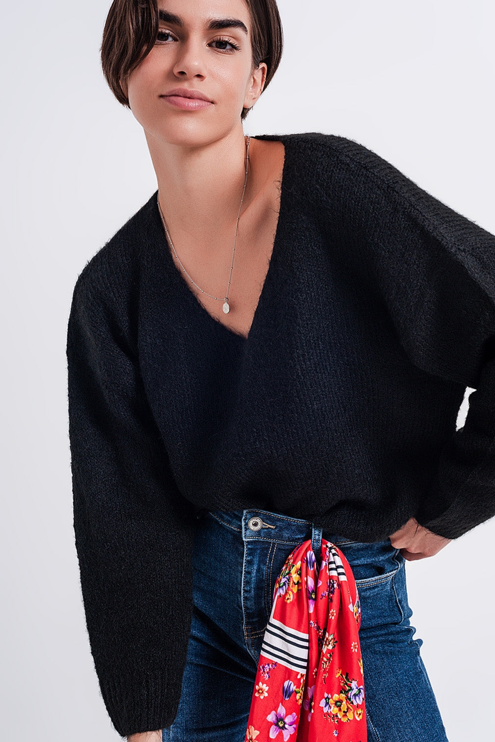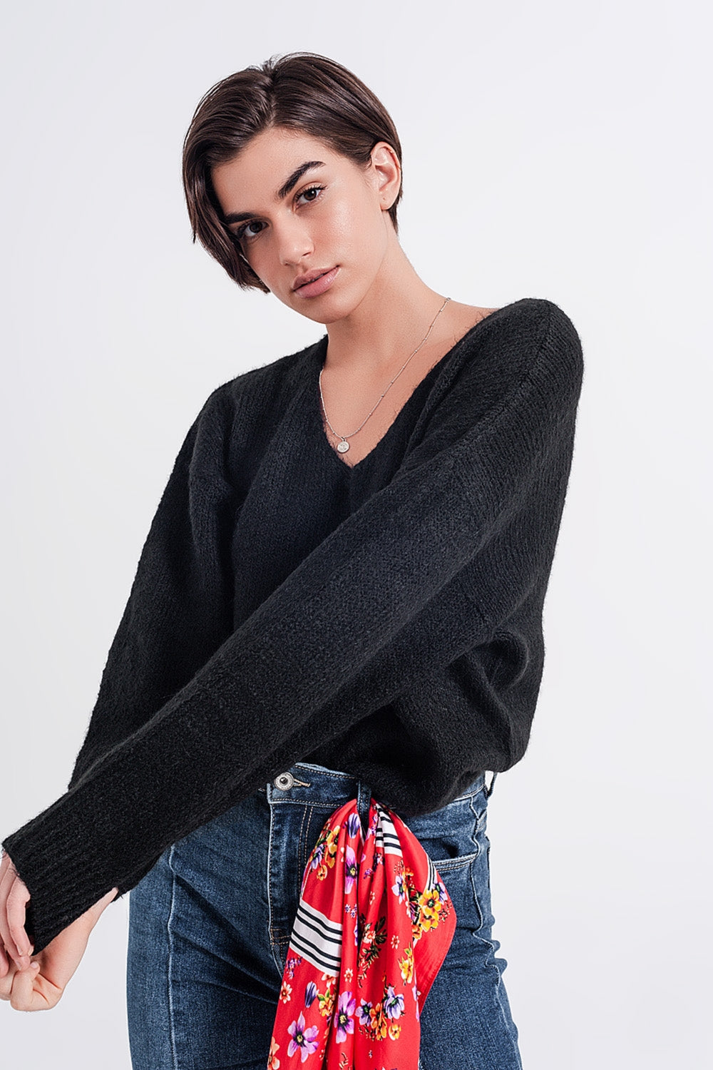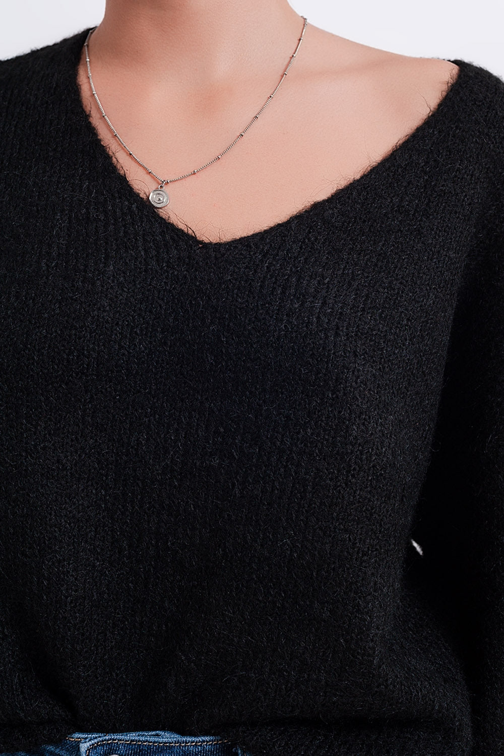 Subcategoria: Jerséis. Cuello: Cuello en V. Manga: Manga Larga. Estilo: Casual. Detalle: Ribete de canalé. Tejido: Punto fino. runs true to size. S.