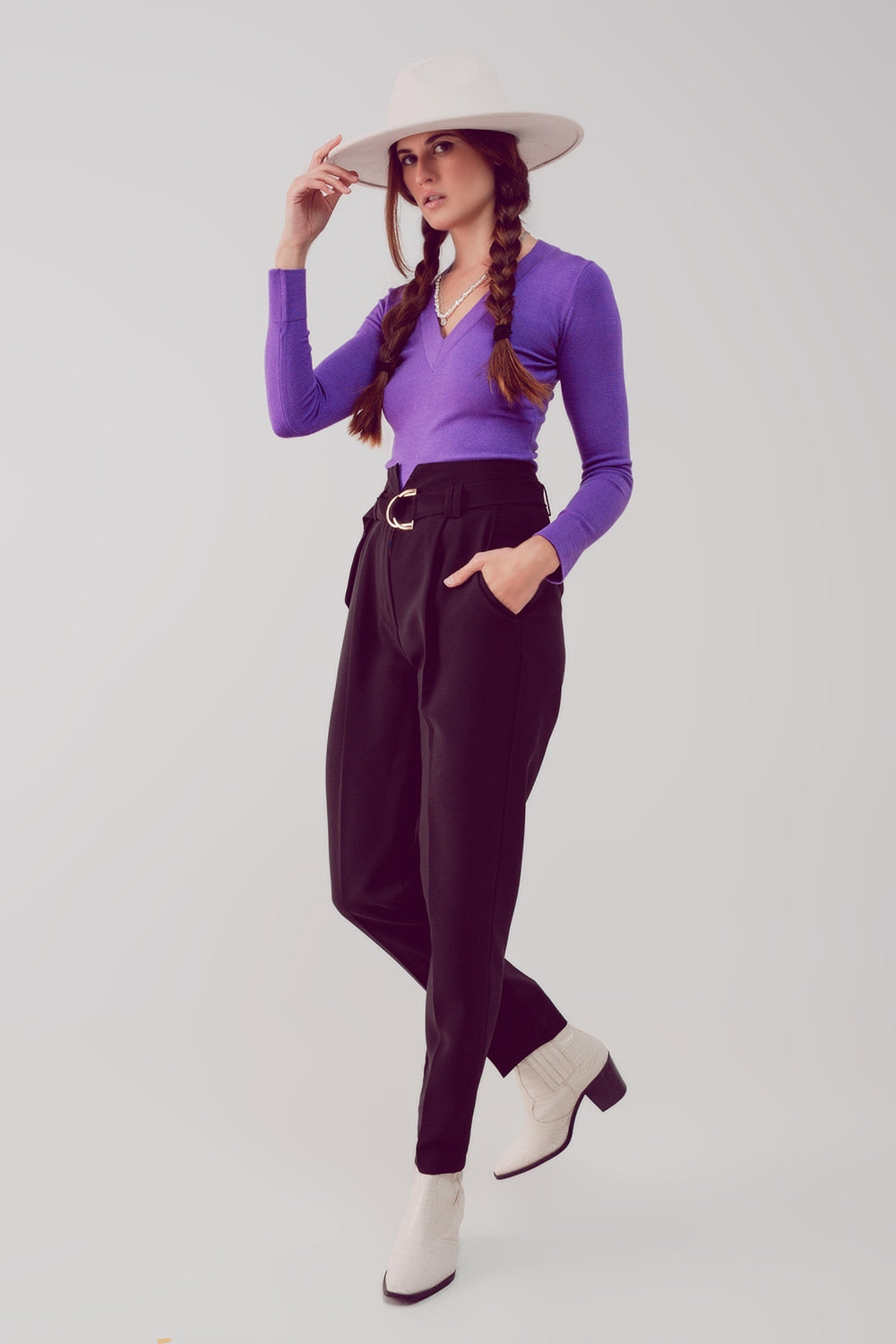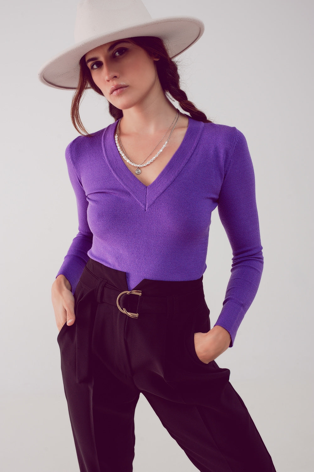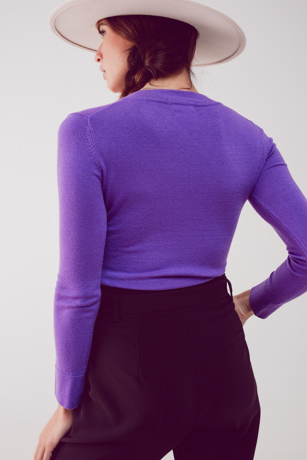 Jersey morado con escote V de punto fino