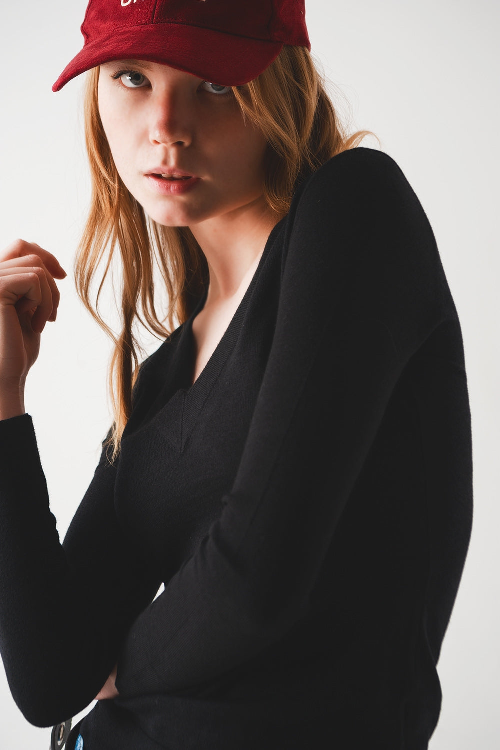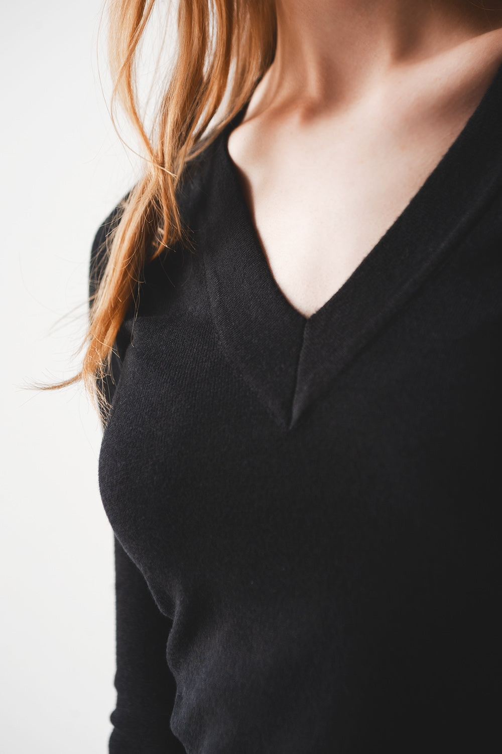 Subcategoria: Jerséis. Cuello: Cuello en V. Manga: Manga Larga. Corte: Corte bodycon. Estilo: Comfortable. Tejido: Punto fino. runs small. S.