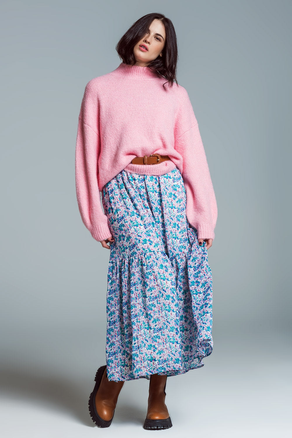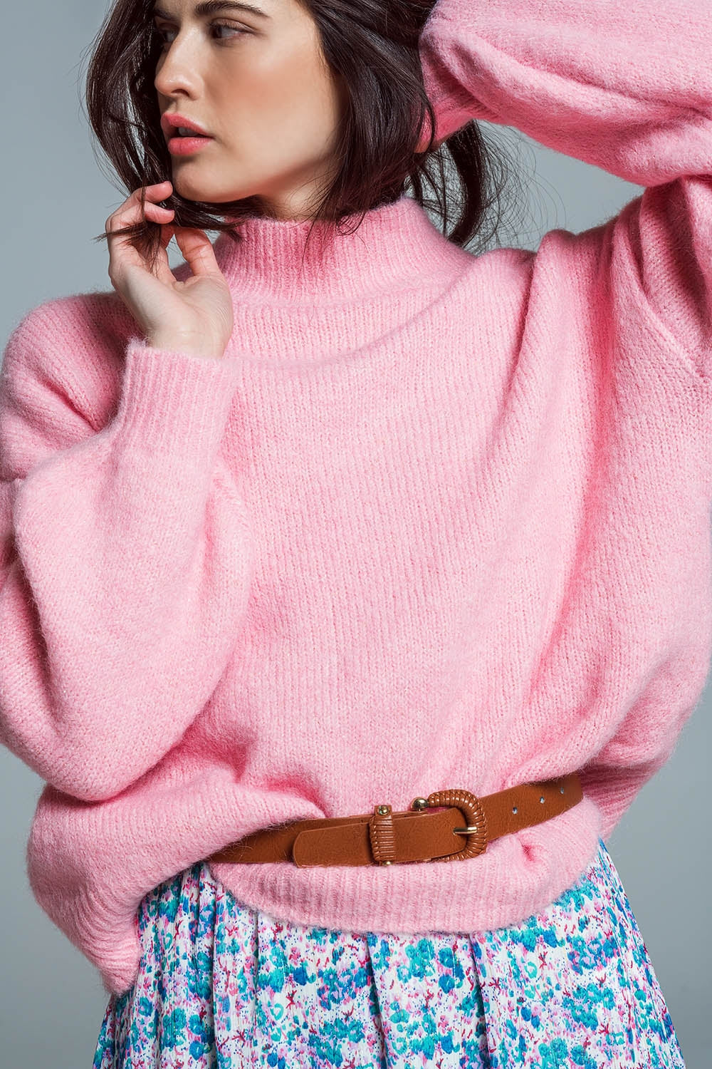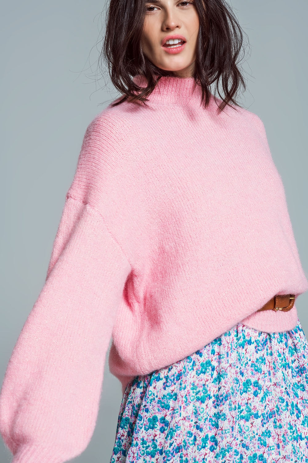 Jersey supergrande con cuello alto y mangas globo en rosa