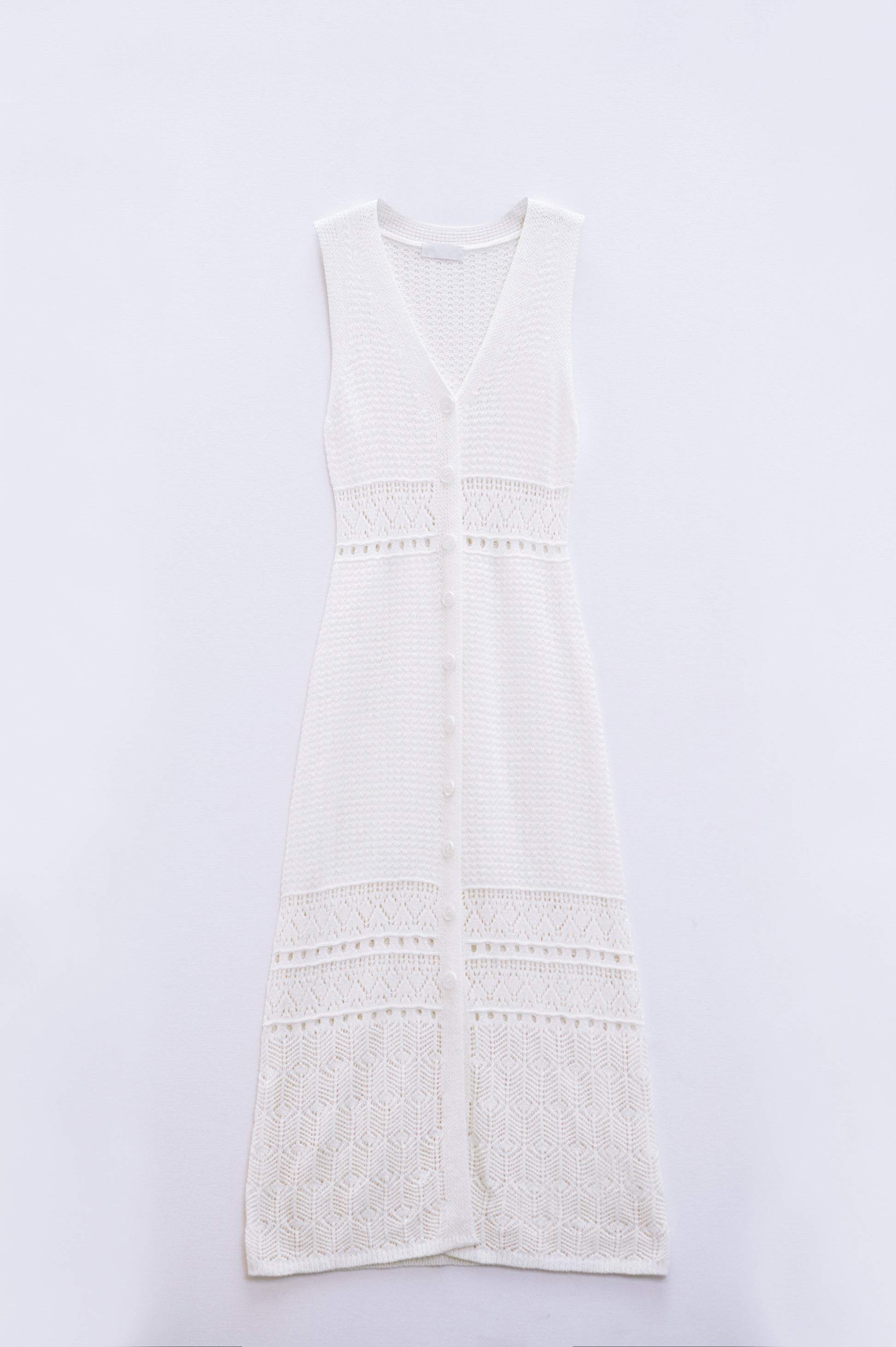 Maxi chaleco de ganchillo con cierre de botones en blanco