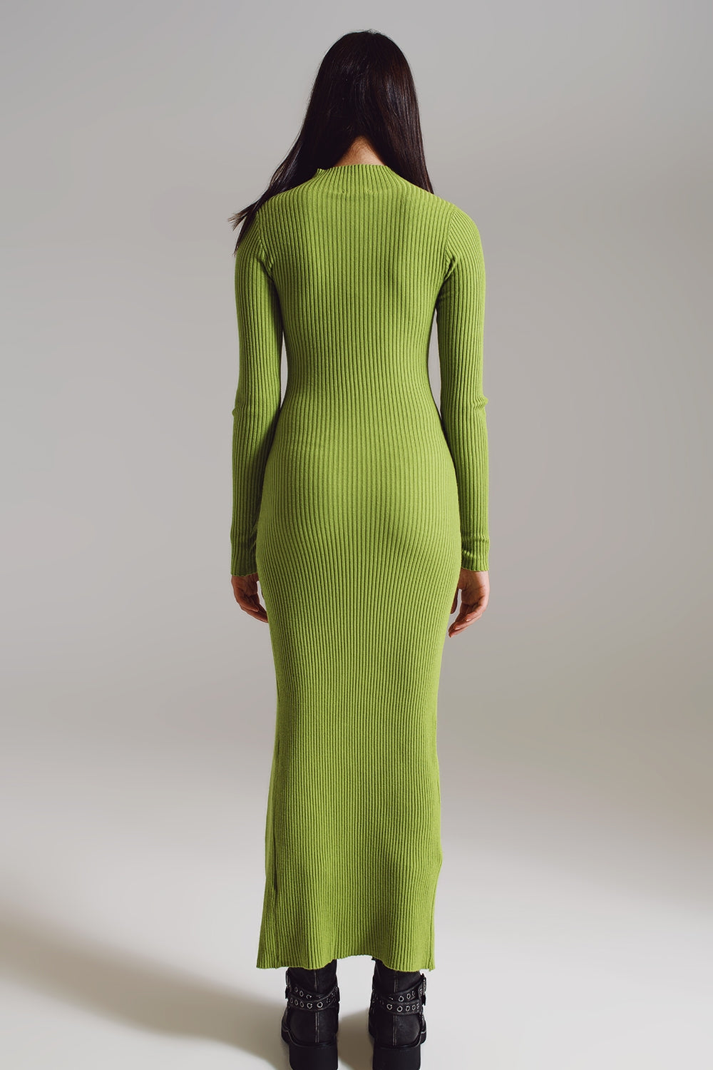 Largo: Maxi. Subcategoria: Vestido. Cuello: Cuello subido. Manga: Manga Larga. Corte: Corte bodycon. Estilo: Diario. Tejido: Punto fino. Borde : Aberturas laterales. runs small. U.