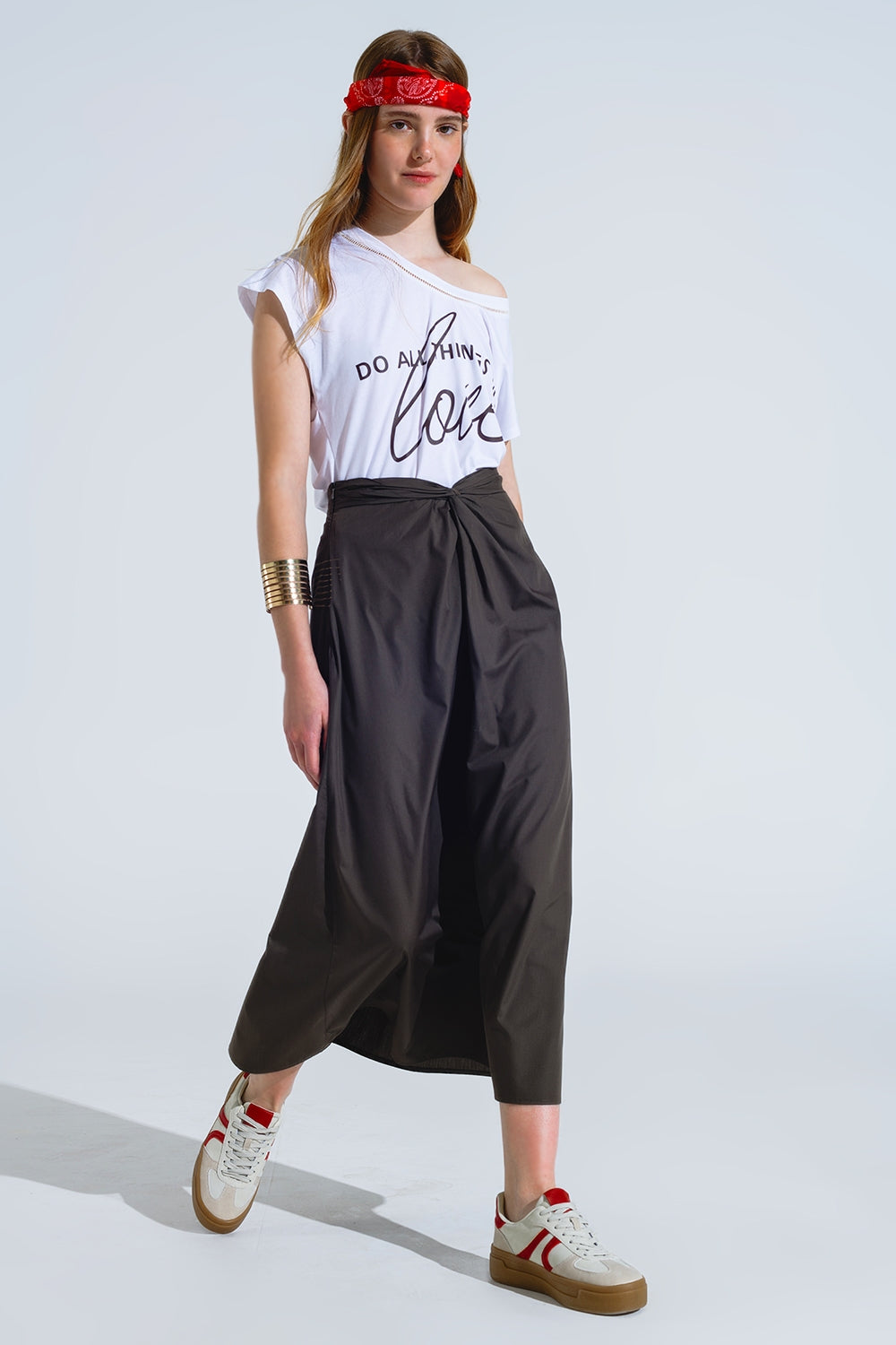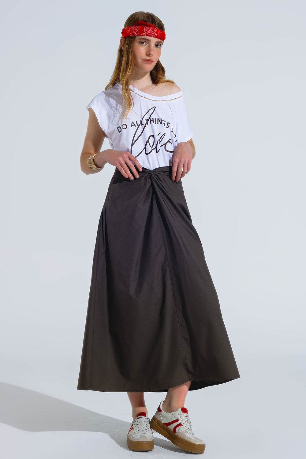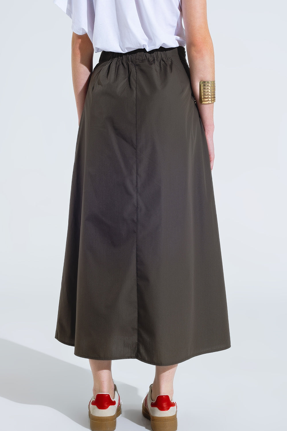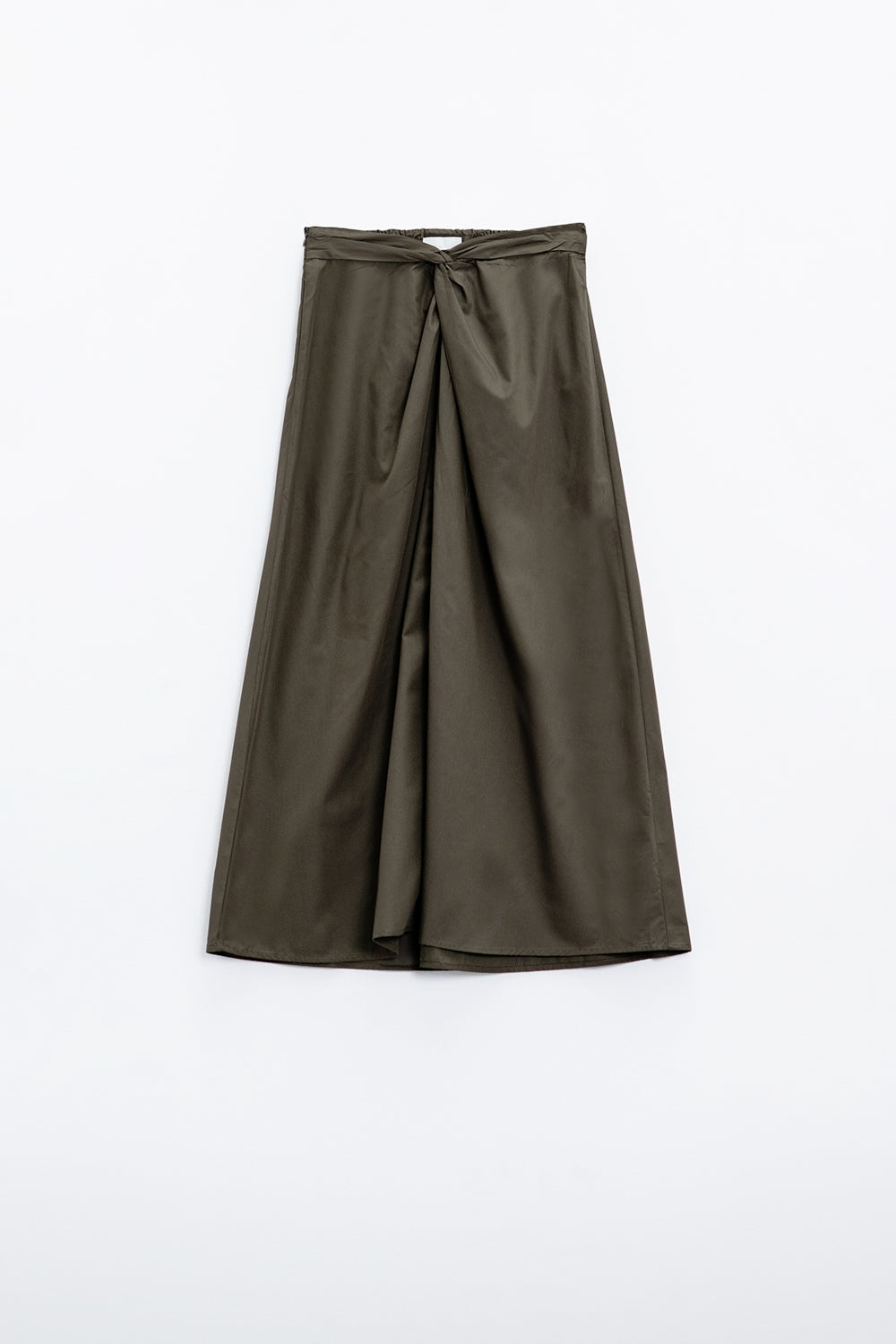 Maxifalda de popelina caqui con detalle de nudo en la cintura