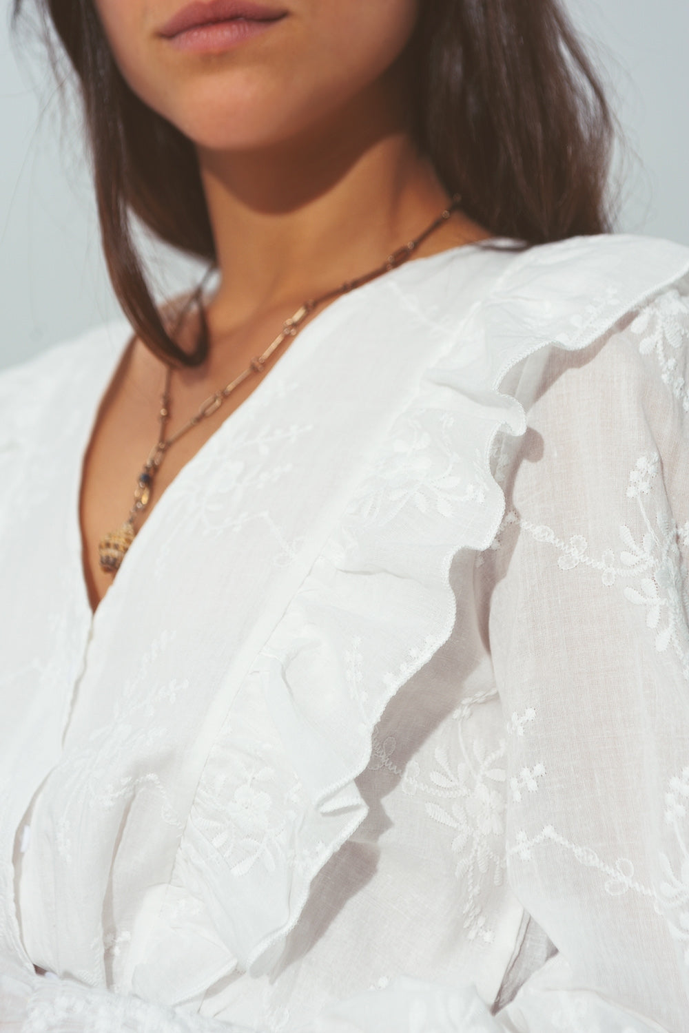 Borde : Mangas elásticas. Cierre: Tapeta de botones. Cintura: Cinturón no Incluido. Corte: Ajuste estándar. Cuello: Cuello en V. Detalle: Detalle de botones. Detalles del producto: Ribetes con volantes. Estampado: Estampado Floral. Estilo: Estilo boho. Largo: Largo mini. Manga: Manga Larga. Subcategoria: Vestido. Tejido: Algodón. runs true to size. S.