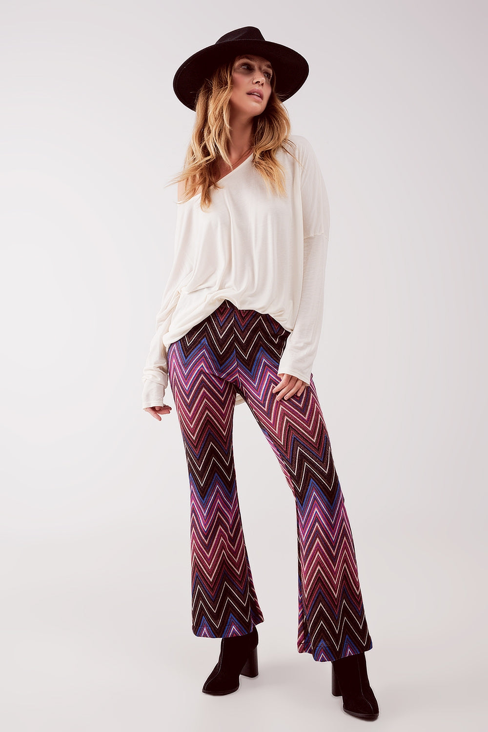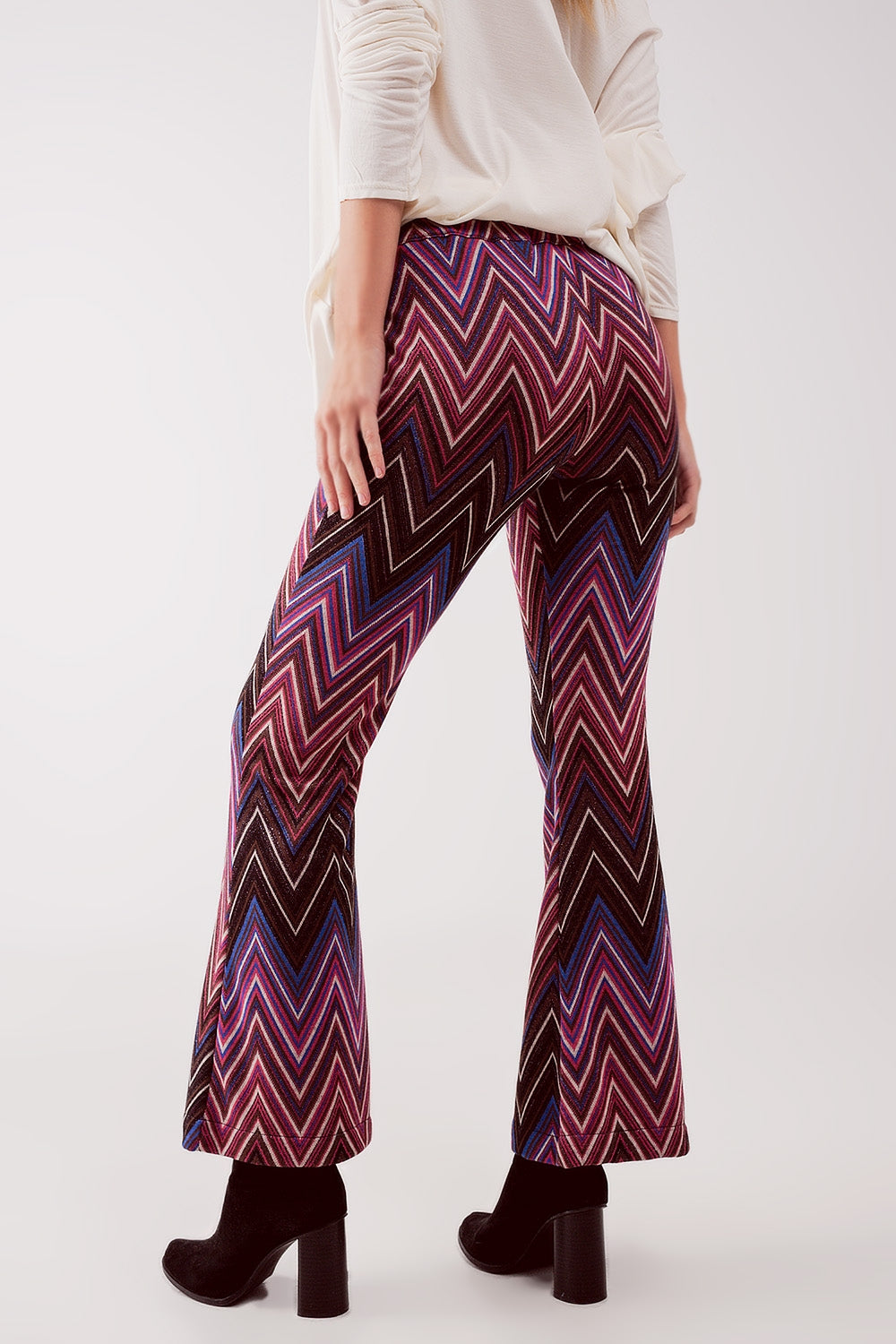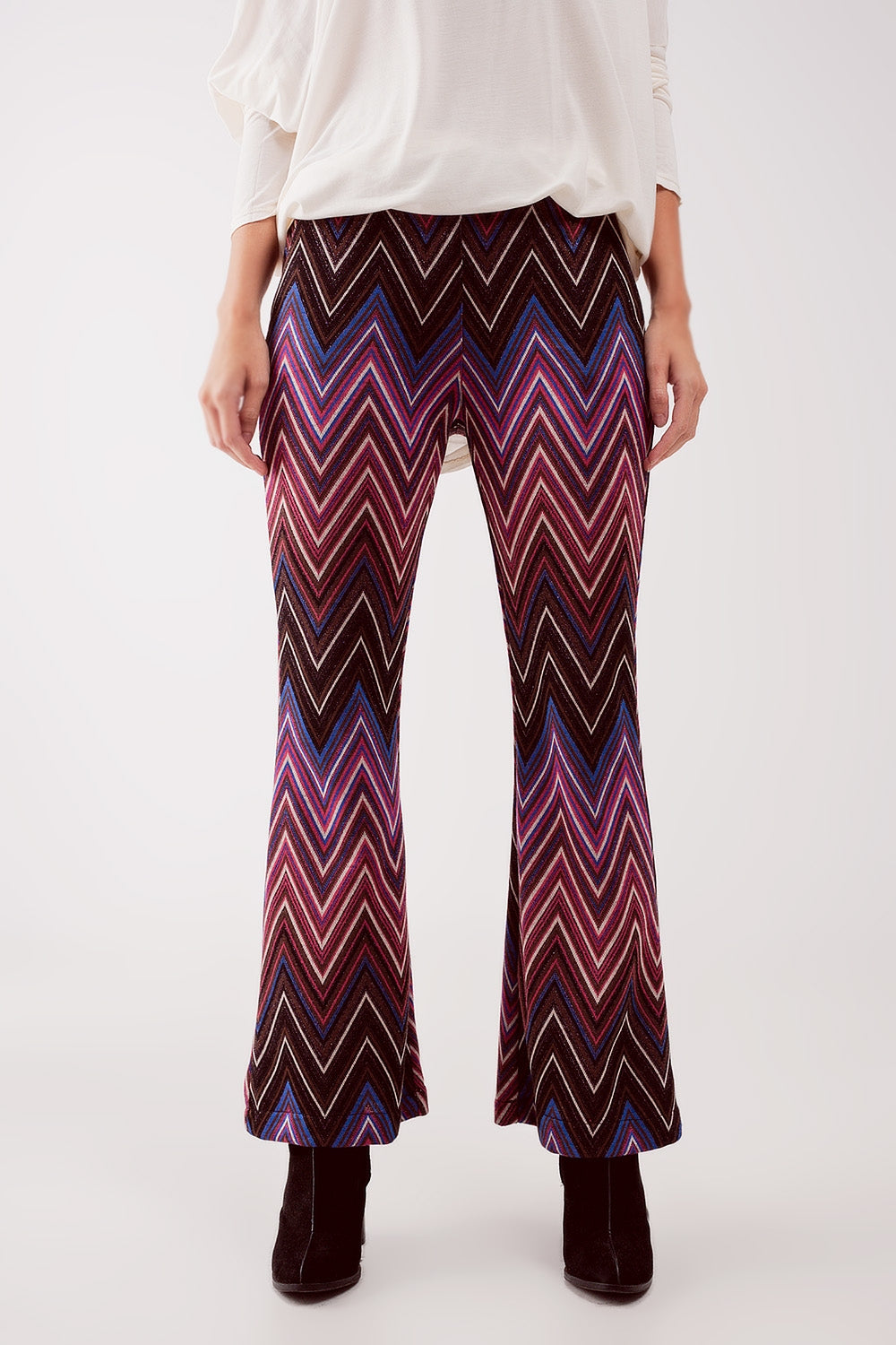 Largo: Largo . Subcategoria: Pantalones . Estampado: Estampado geométrico. Corte: Corte acampanado. Pierna: Acampanados. Estilo: Diario. Tejido: Punto suave. Bolsillos: Bolsillos laterales. Cierre: Cierre con cremallera. Detalles del producto: Bolsillos funcionales. runs true to size. S.