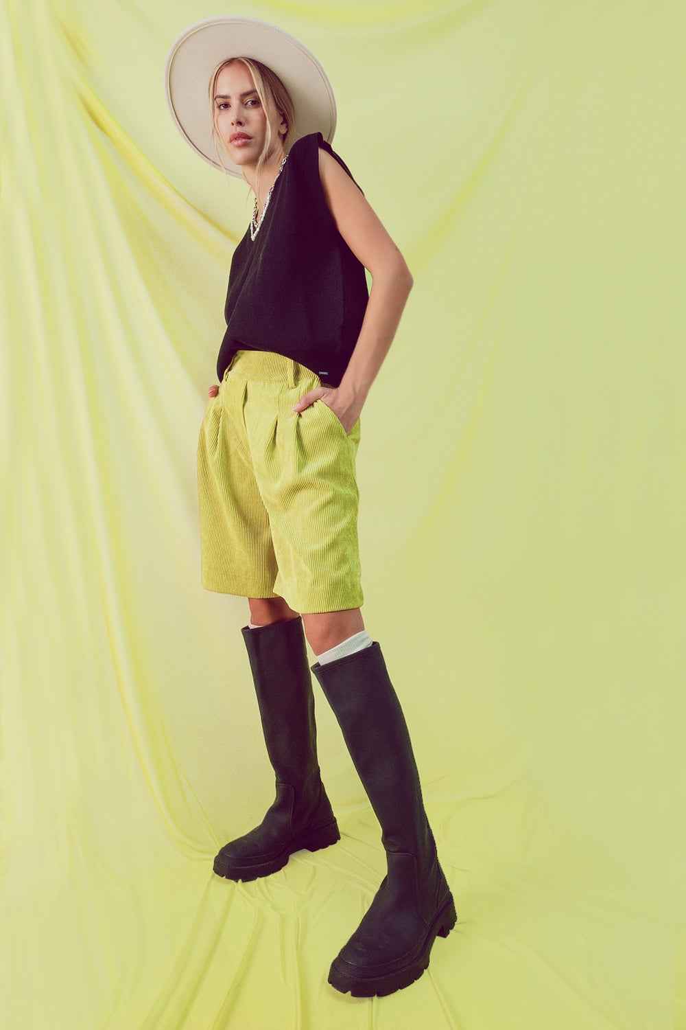 Largo: Estilo corto. Subcategoria: Pantalones cortos. Corte: Talle alto . Pierna: Recto. Estilo: Diario. Detalle: Trabillas para el cinturón. Tejido: Pana . Bolsillos: Bolsillos laterales. Cierre: Cierre con cremallera. Detalles del producto: Bolsillos funcionales. runs true to size. S.
