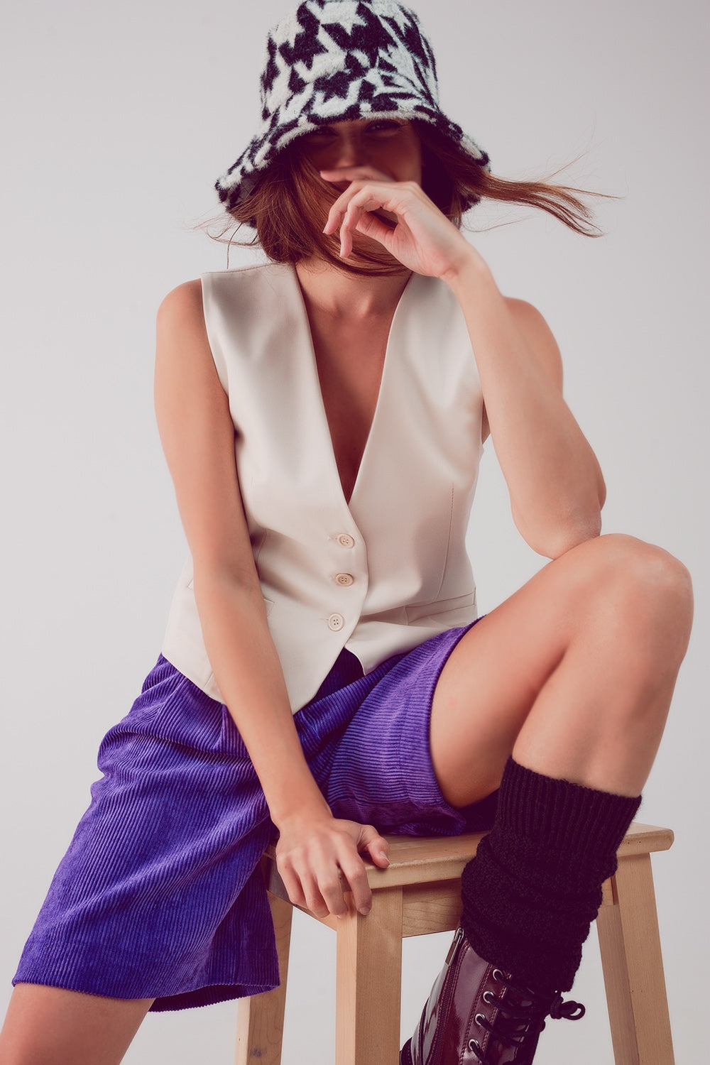 Largo: Estilo corto. Subcategoria: Pantalones cortos. Corte: Talle alto . Pierna: Recto. Estilo: Diario. Detalle: Trabillas para el cinturón. Tejido: Pana . Bolsillos: Bolsillos laterales. Cierre: Cierre con cremallera. Detalles del producto: Bolsillos funcionales. runs true to size. S.