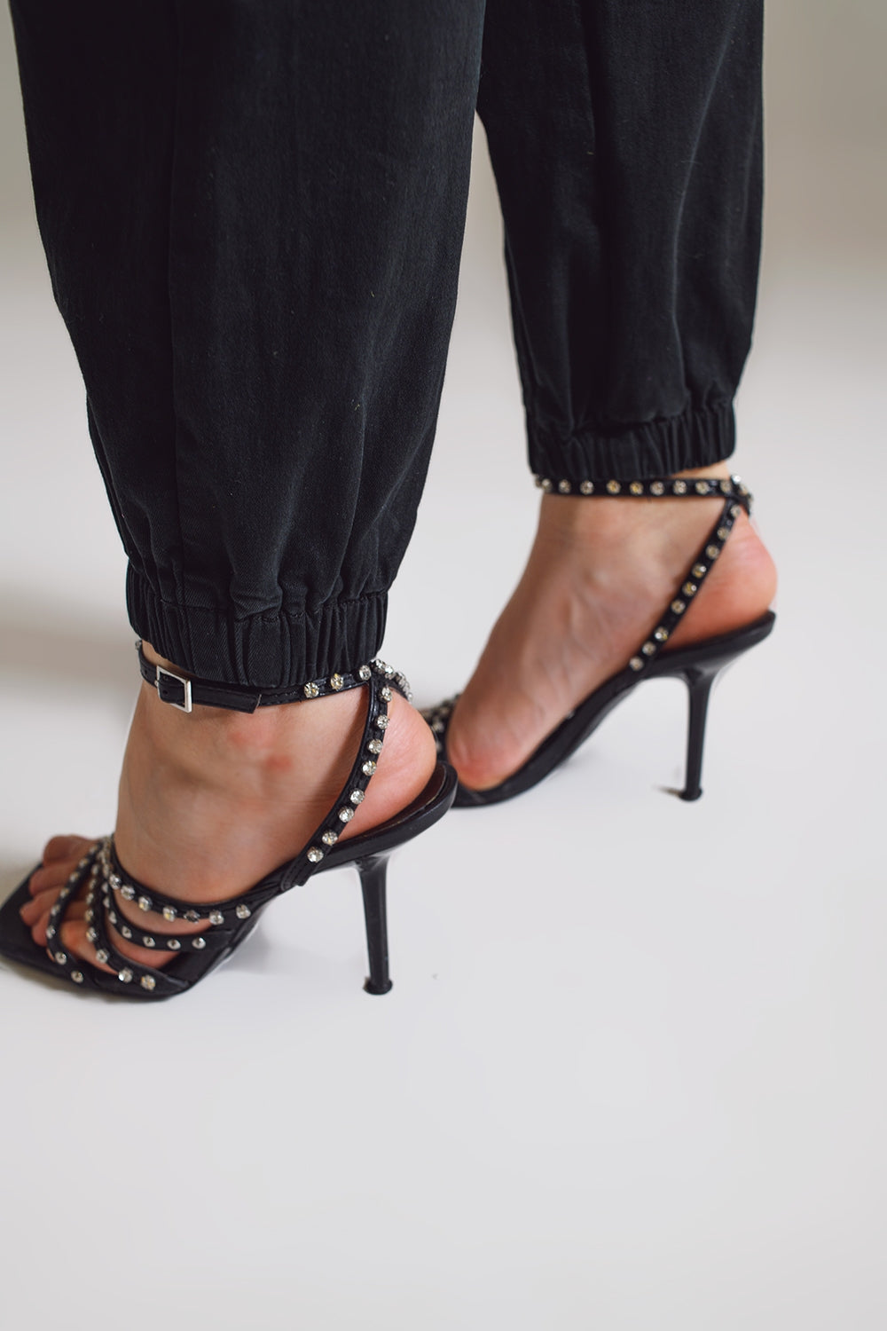 pantalones de cargo negros con cintura y dobladillo elásticos