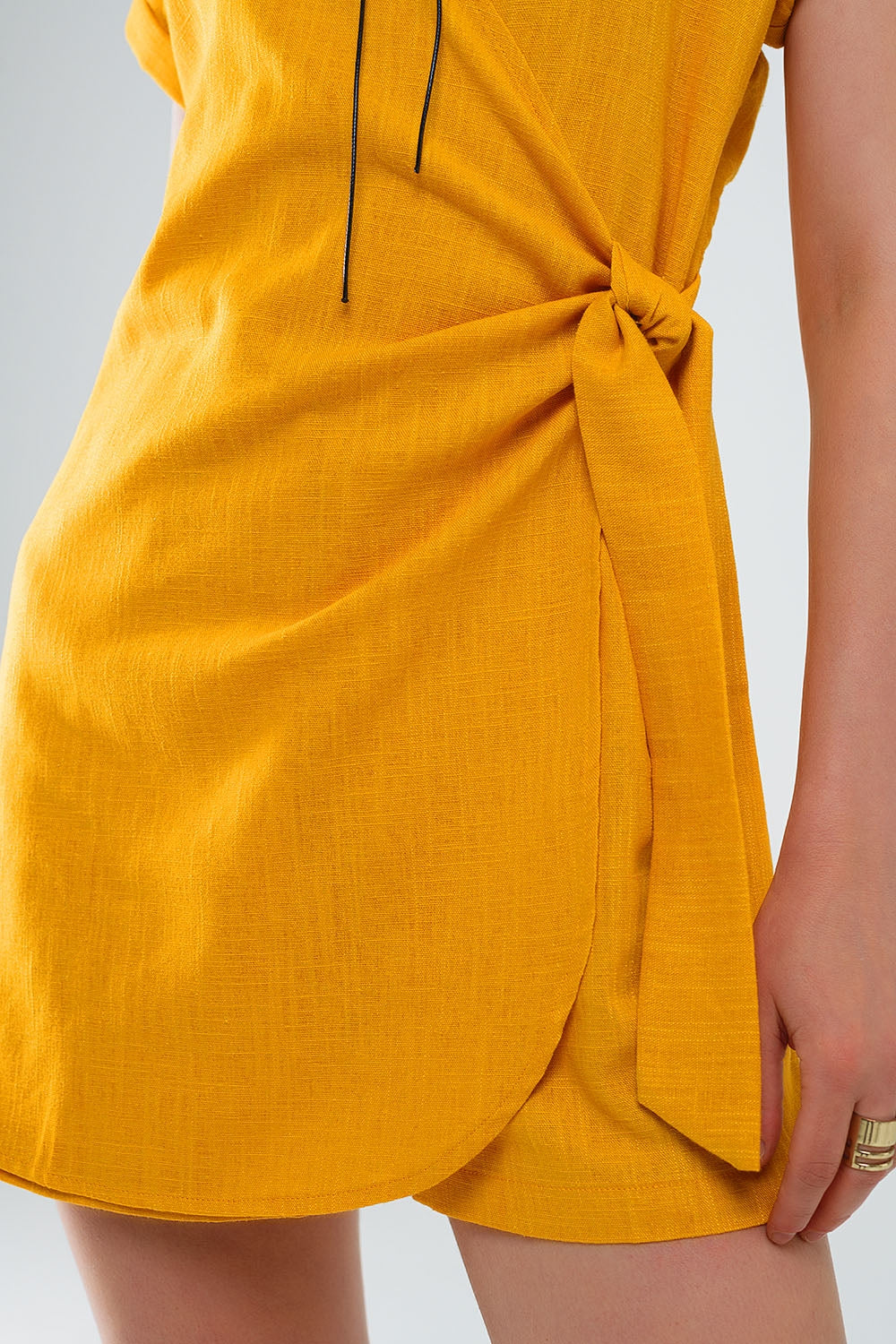 Largo: Largo mini. Subcategoria: Mono Corto. Cuello: Cuello en V. Manga: Manga Corta. Corte: Ajuste estándar. Estilo: Diario. Tejido: Tejido ligero . Cierre: Cierre de cremallera lateral. Detalles del producto: Detalle de nudo. Cintura: Lazo anudado a un lado. runs true to size. S.