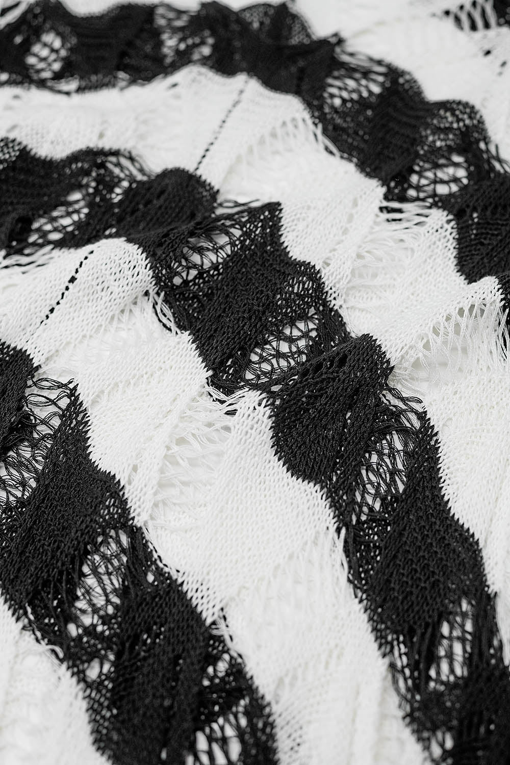 Subcategoria: Cárdigan. Cuello: Cuello italiano . Manga: Mangas anchas. Estampado: Estampado a rayas. Corte: Corte extragrande. Estilo: Comfortable. Detalle: Borde con flecos. Tejido: Punto pointelle. U.