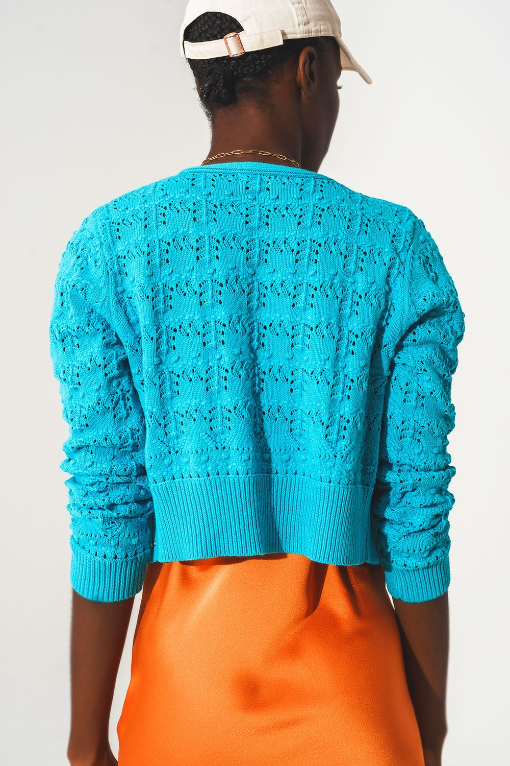 Largo: Estilo corto. Subcategoria: Cárdigan. Cuello: Cuello en V. Manga: Manga Larga. Corte: Diseño cruzado. Estilo: Romántico. Detalle: Detalle de botones. Tejido: Punto pointelle. Cierre: Tapeta parcial de botones. runs true to size. S.